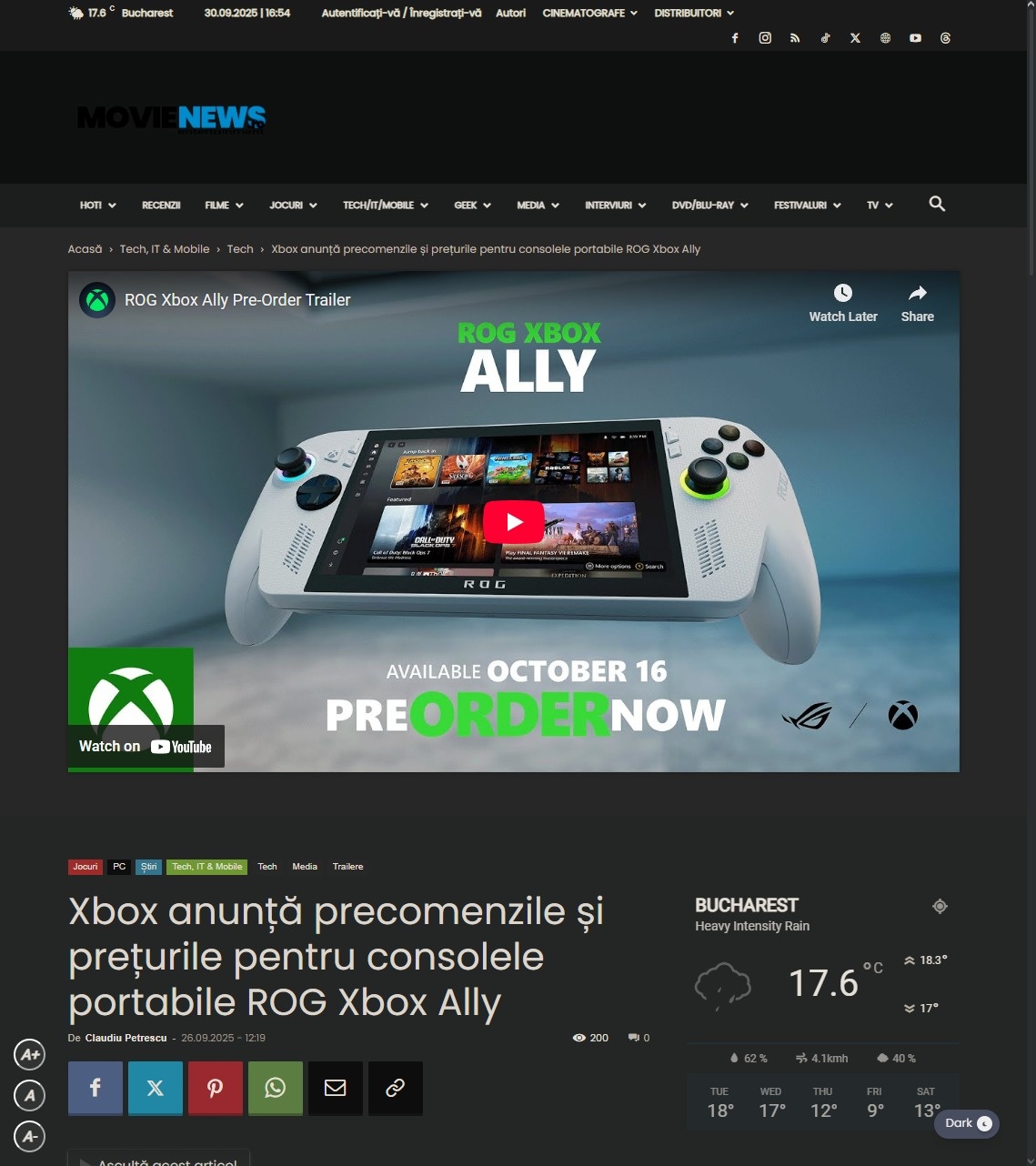 Xbox anunța precomenzile și prețurile pentru consolele portabile ROG Xbox Ally