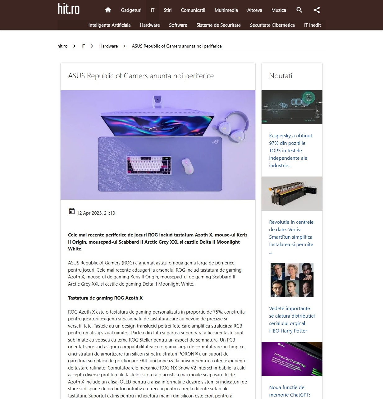 ASUS expands its Republic of Gamers gaming peripherals line with the ROG Azoth X keyboard, ROG Keris II Origin mouse, ROG Scabbard II Arctic Gray XXL mousepad, and ROG Delta II Moonlight White headset, enhancing performance and style.