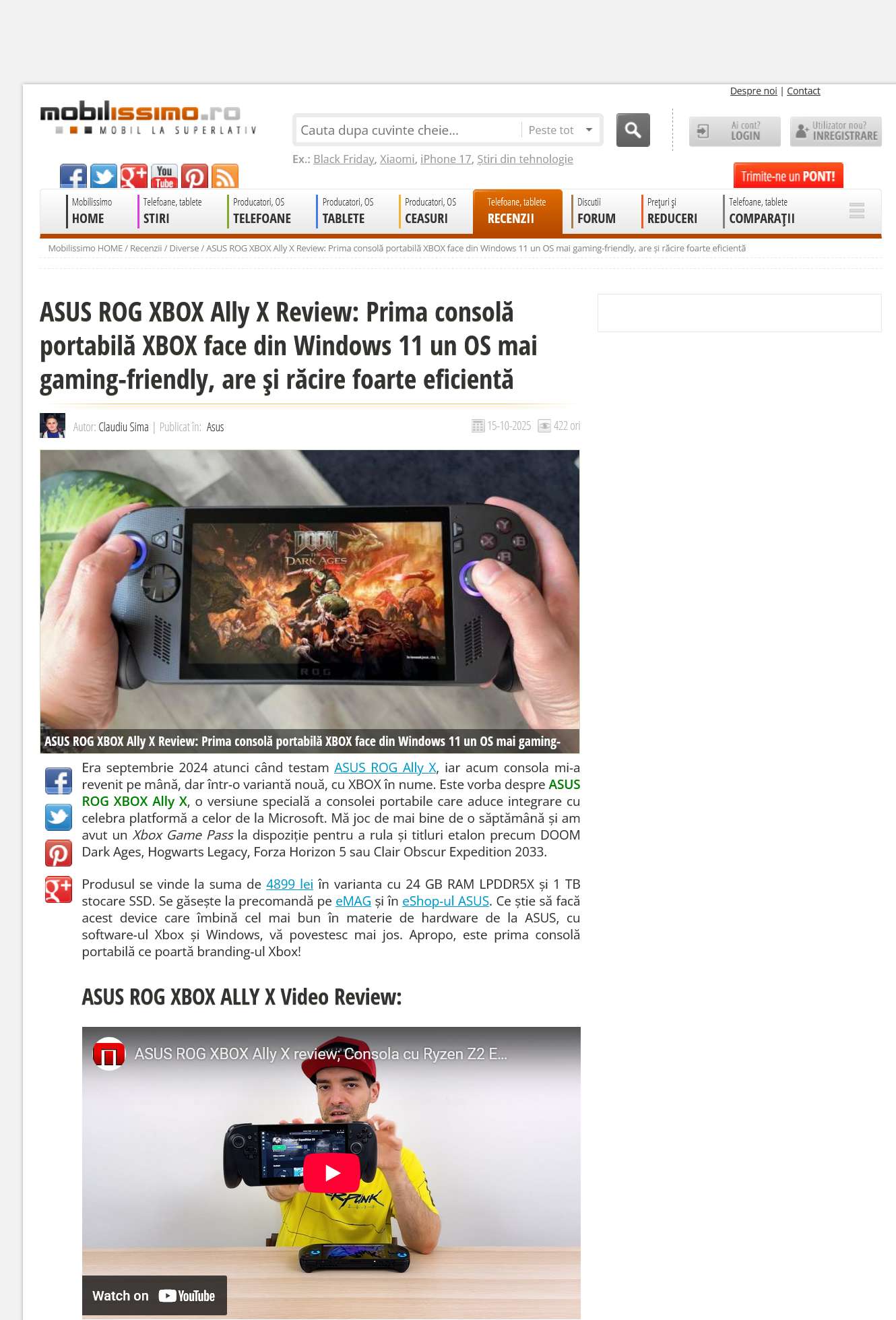 ASUS ROG XBOX Ally X Review: Prima consola portabila XBOX face din Windows 11 un OS mai gaming-friendly, are și racire foarte eficienta