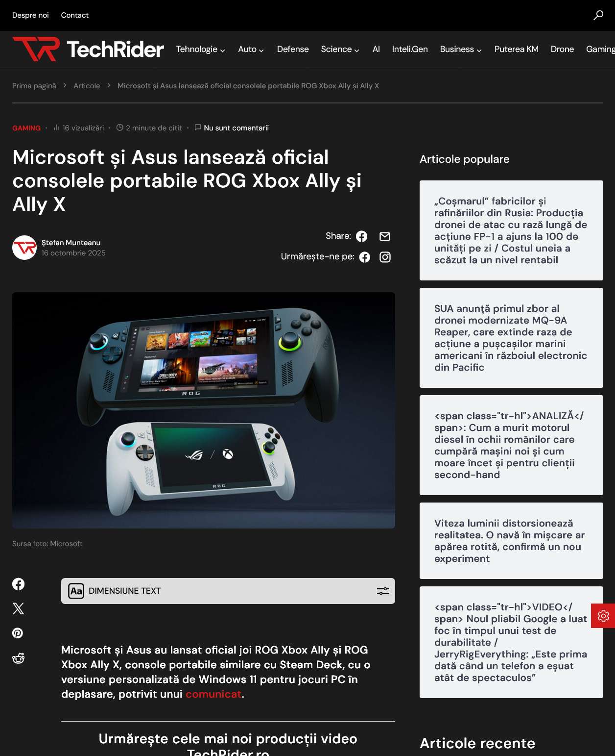 Microsoft și Asus lanseaza oficial consolele portabile ROG Xbox Ally și Ally X