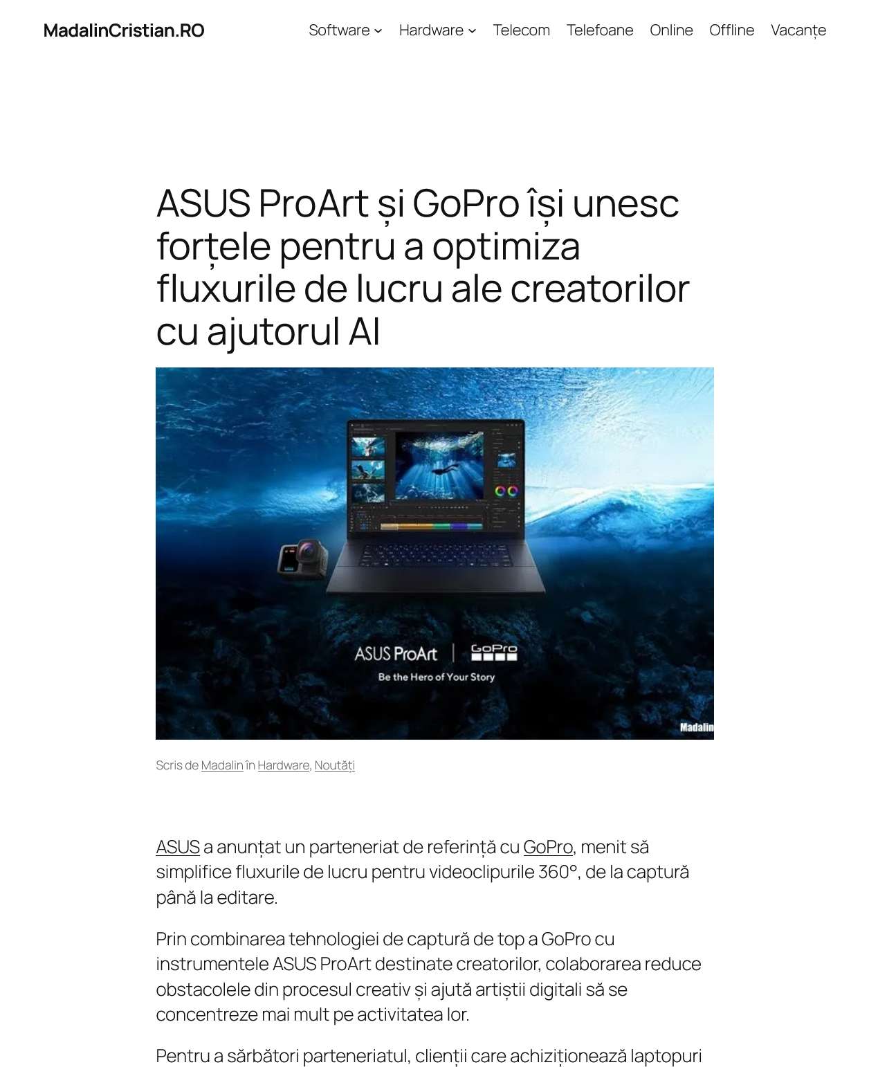ASUS ProArt și GoPro iși unesc forțele pentru a optimiza fluxurile de lucru ale creatorilor cu ajutorul AI