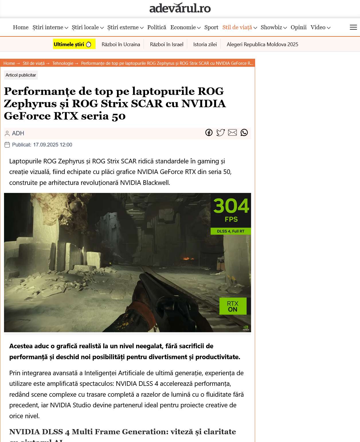 Performanțe de top pe laptopurile ROG Zephyrus și ROG Strix SCAR cu NVIDIA GeForce RTX seria 50