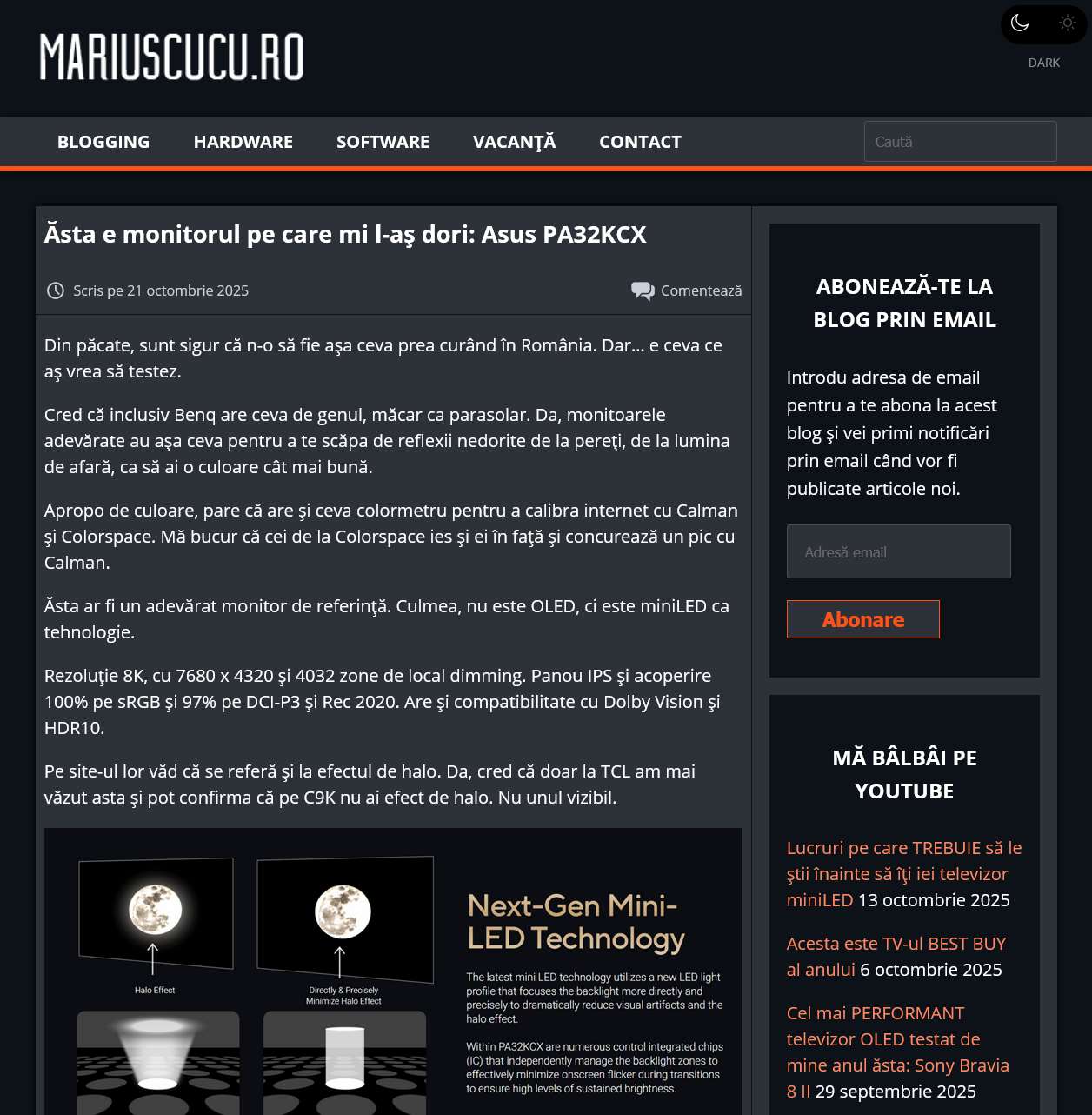 The blogger expresses his desire to interact with the Asus PA32KCX monitor, knowing that the model is not currently available locally.