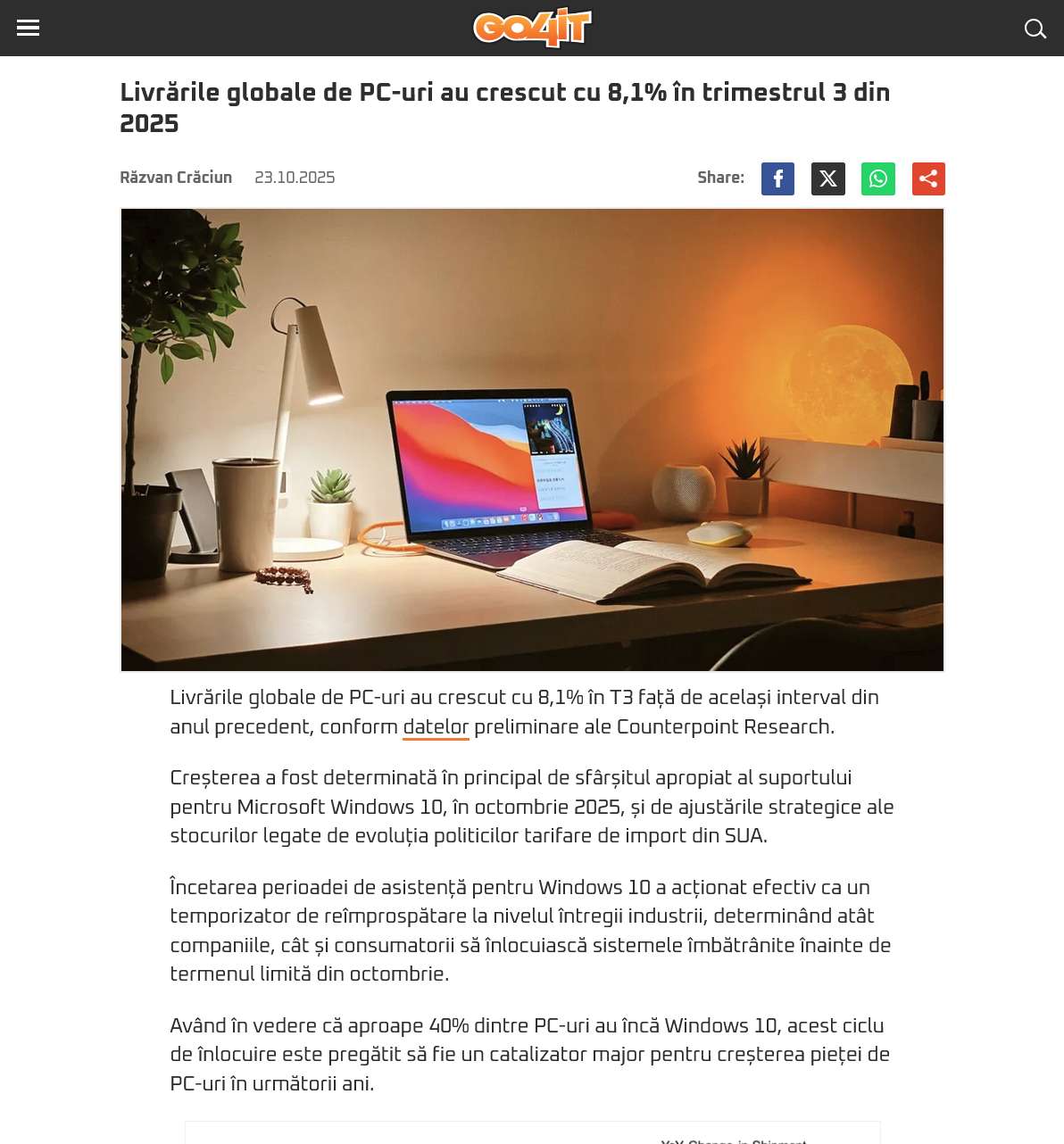 Livrarile globale de PC-uri au crescut cu 8,1% in trimestrul 3 din 2025