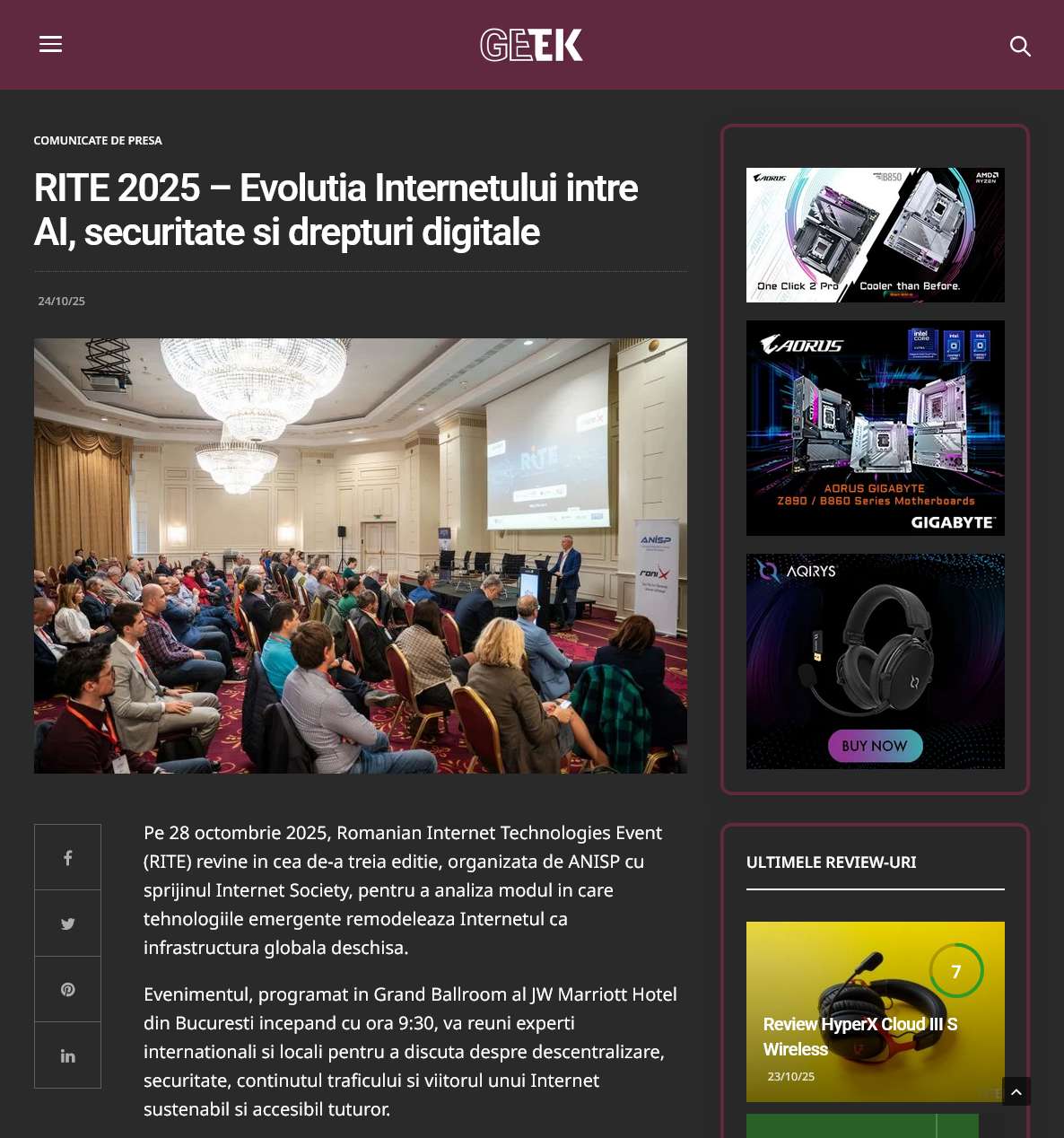 On October 28, the JW Marriott Hotel in Bucharest will host RITE 2025, a conference organized by ANISP with the support of the Internet Society. This event brings together key industry players, including representatives from Microsoft, Oracle, and AWS.