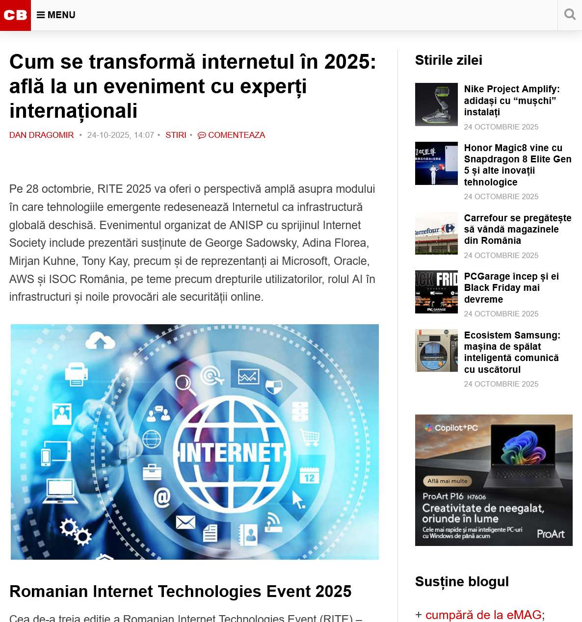On October 28, the JW Marriott Hotel in Bucharest will host RITE 2025, a conference organized by ANISP with the support of the Internet Society. This event brings together key industry players, including representatives from Microsoft, Oracle, and AWS.