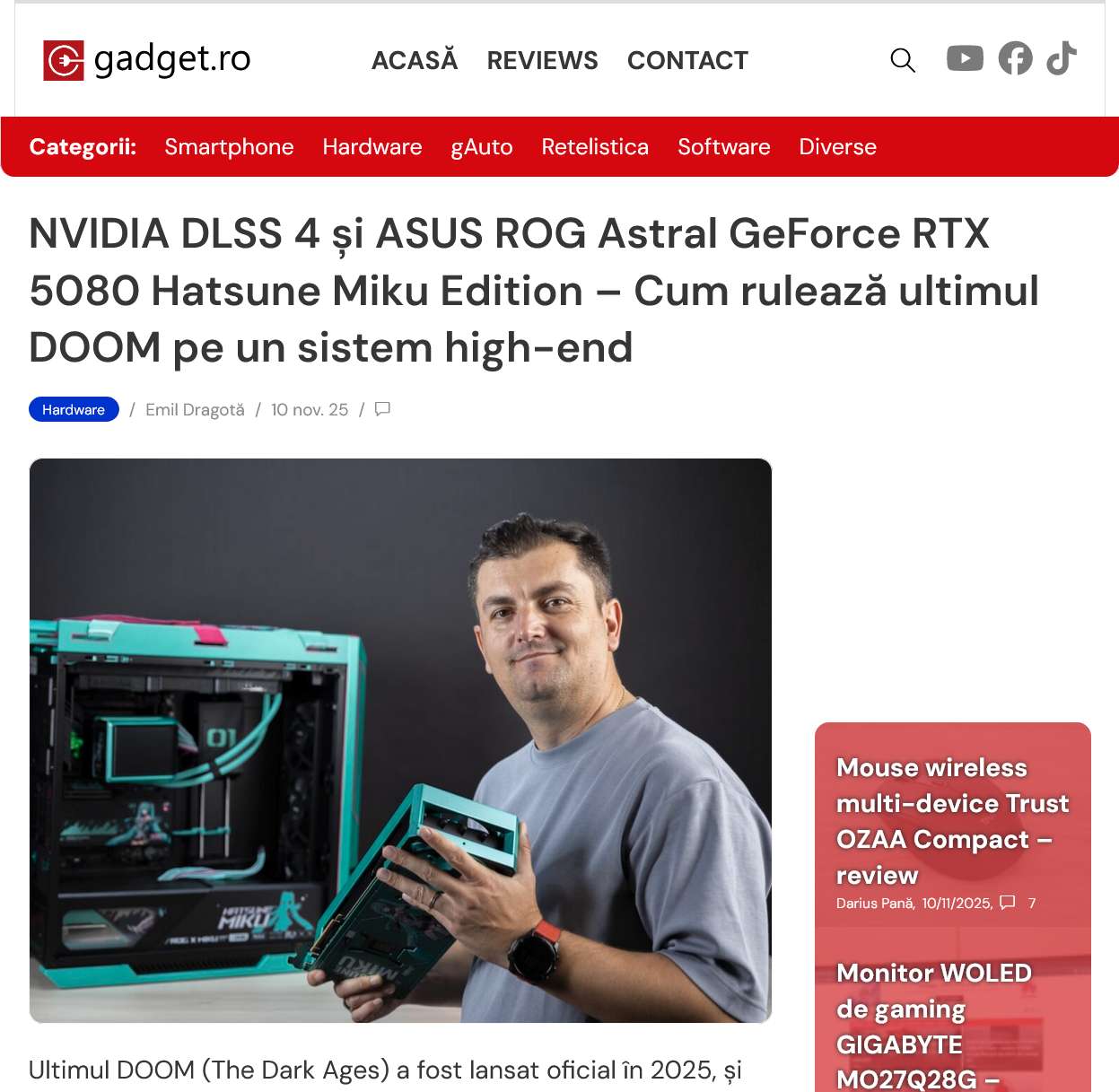 NVIDIA DLSS 4 și ASUS ROG Astral GeForce RTX 5080 Hatsune Miku Edition – Cum ruleaza ultimul DOOM pe un sistem high-end