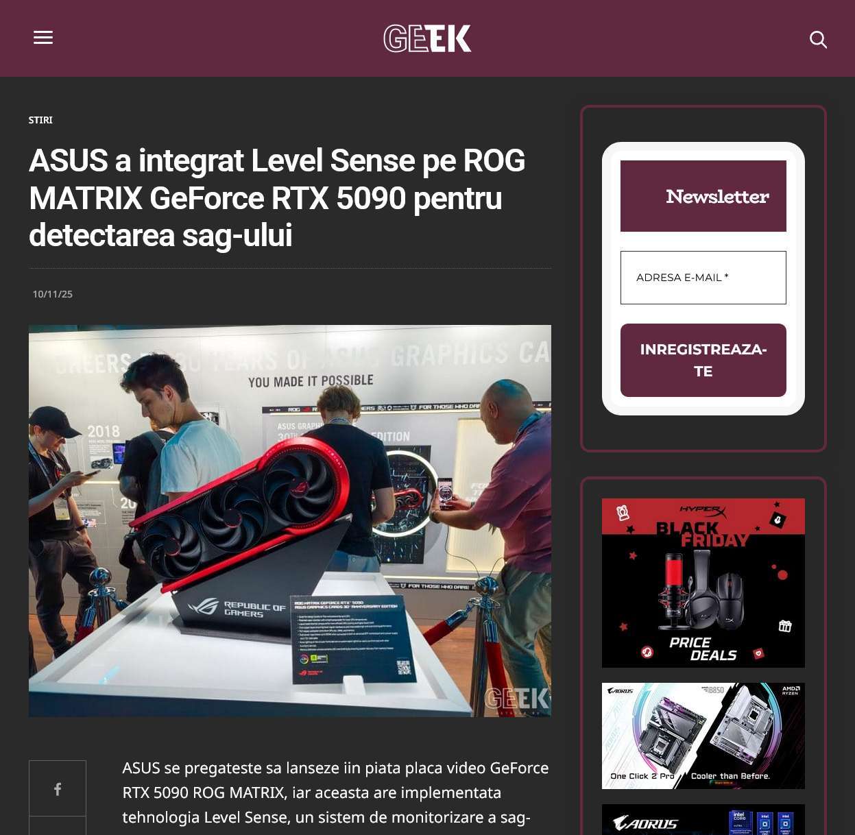 ASUS a integrat Level Sense pe ROG MATRIX GeForce RTX 5090 pentru detectarea sag-ului