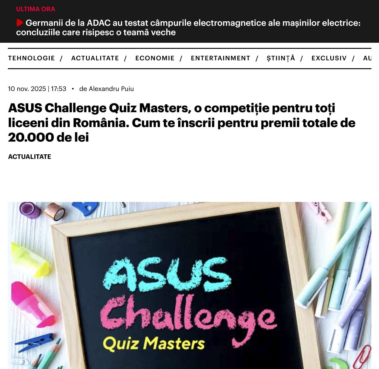 ASUS Challenge Quiz Masters, o competiție pentru toți liceeni din Romania. Cum te inscrii pentru premii totale de 20.000 de lei