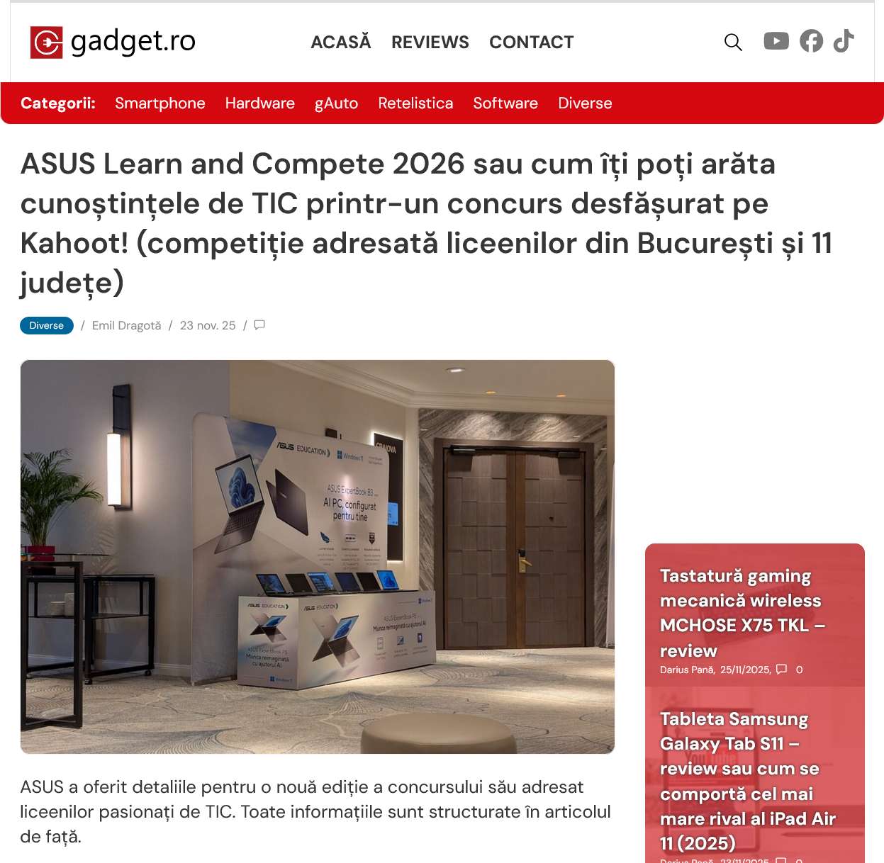 ASUS Learn and Compete 2026 sau cum îți poți arăta cunoștințele de TIC printr-un concurs desfășurat pe Kahoot! (competiție adresată liceenilor din București și 11 județe)