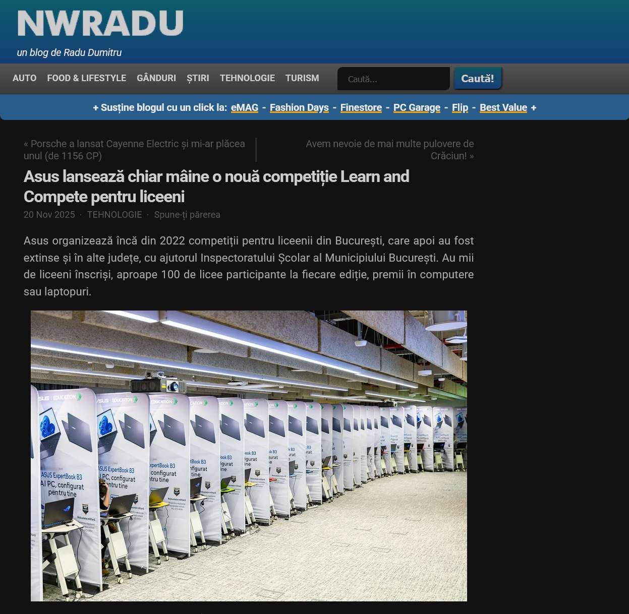 Since 2022, Asus has been organizing competitions for high school students in Bucharest, which have since been extended to other counties with the help of the Bucharest Municipal School Inspectorate. Thousands of high school students are registered, with nearly 100 high schools participating in each edition, and prizes including computers and laptops.