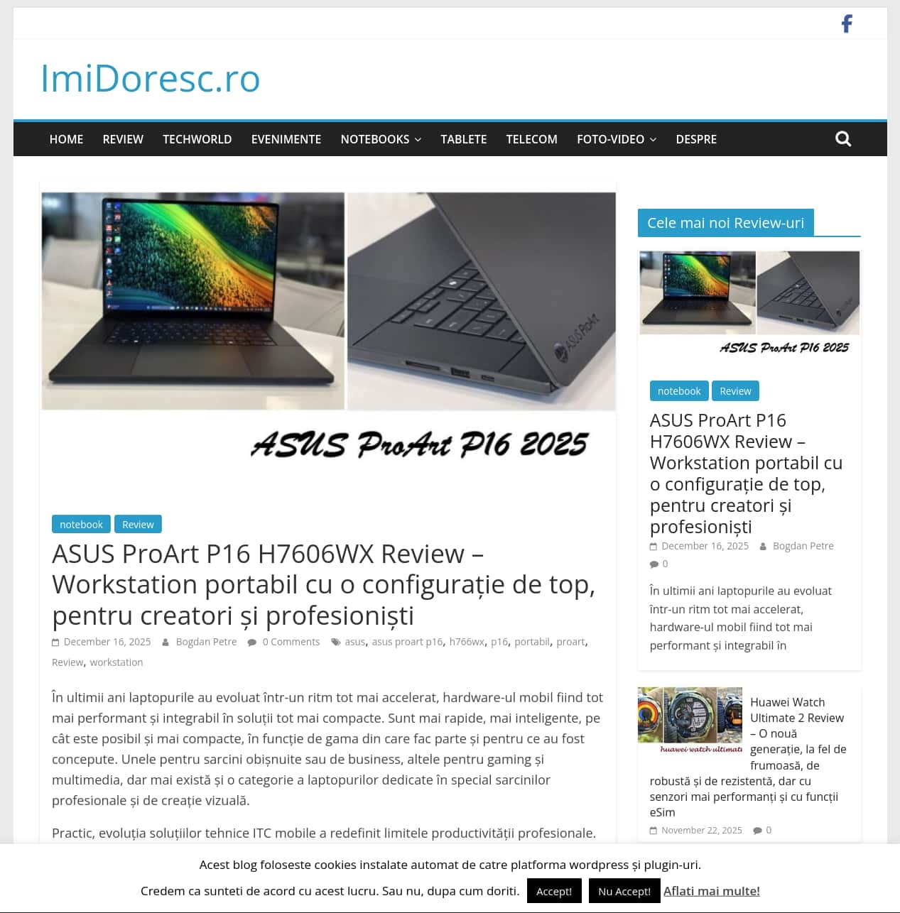 ASUS ProArt P16 H7606WX Review – Workstation portabil cu o configurație de top, pentru creatori și profesioniști