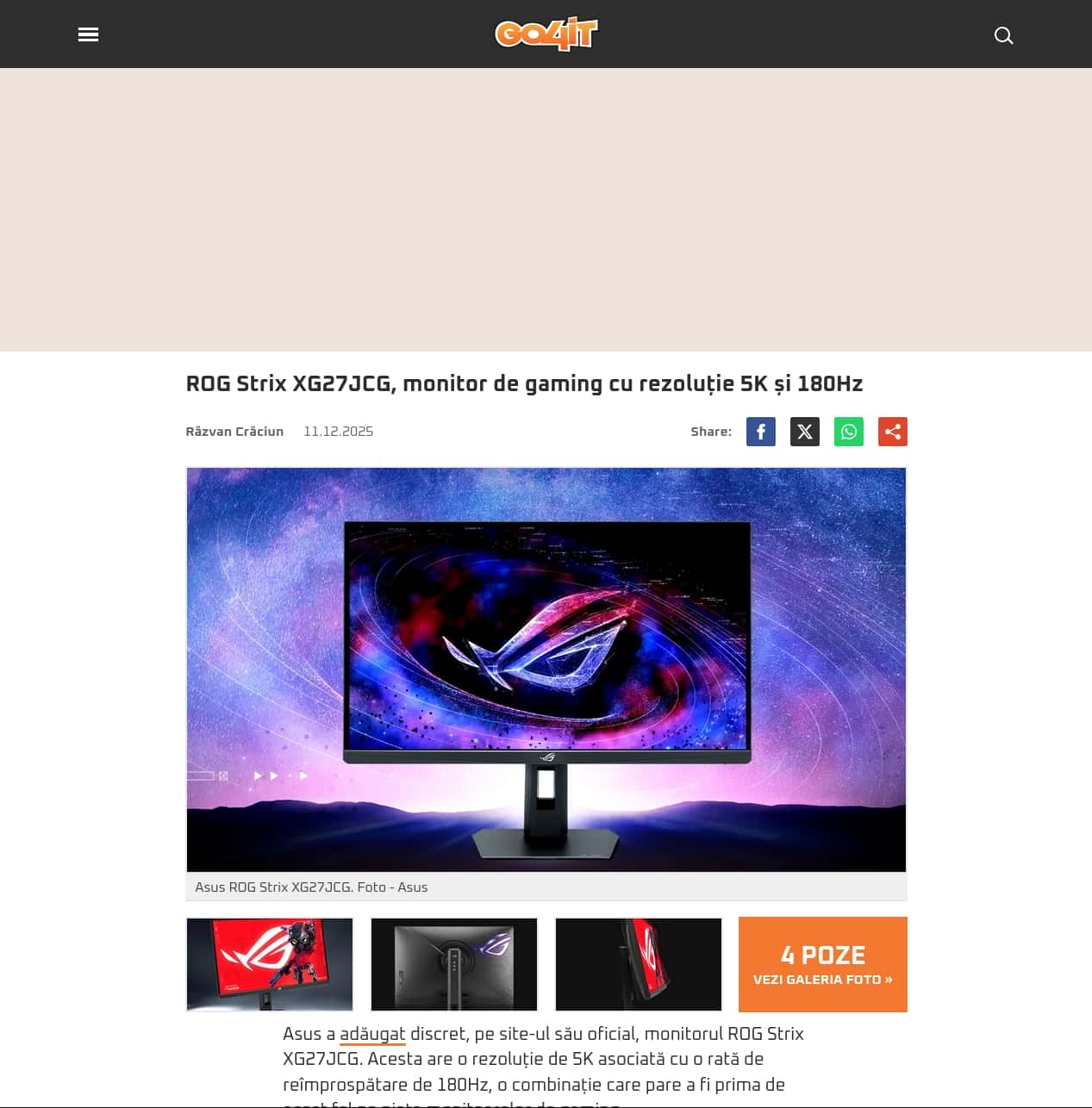 ROG Strix XG27JCG, monitor de gaming cu rezoluție 5K și 180Hz