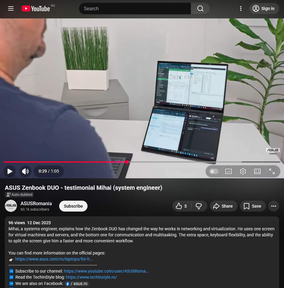 ASUS Zenbook DUO - testimonial Mihai (inginer de sistem)