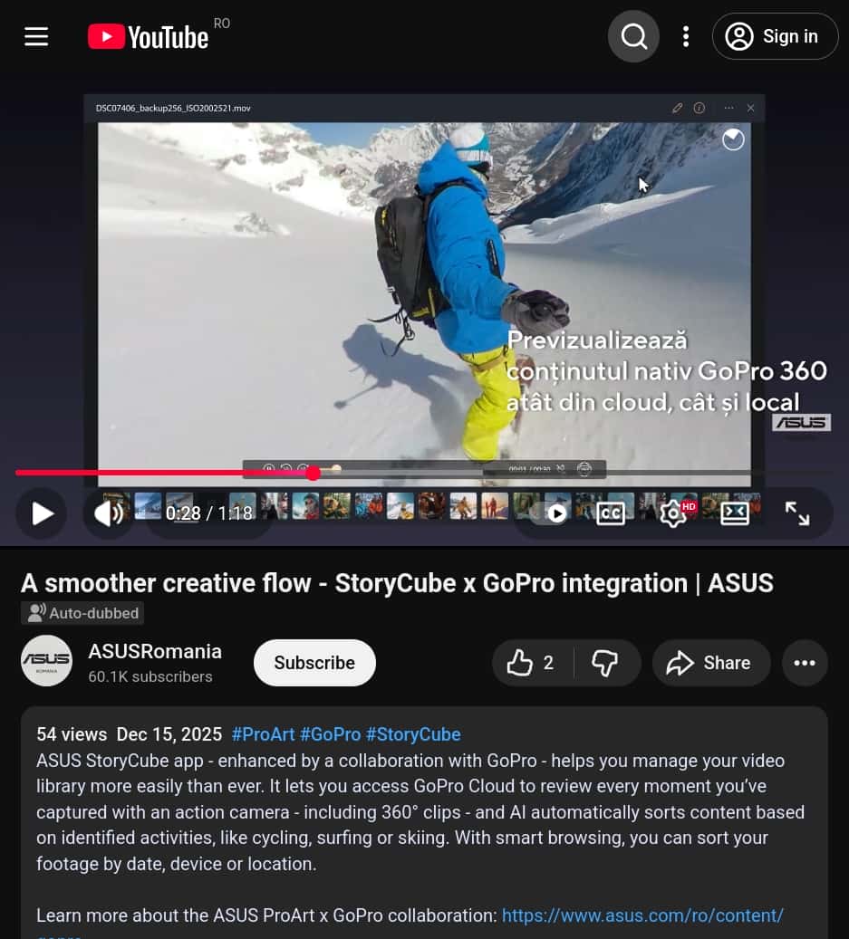 Un flux creativ mai fluid - integrarea StoryCube x GoPro | ASUS