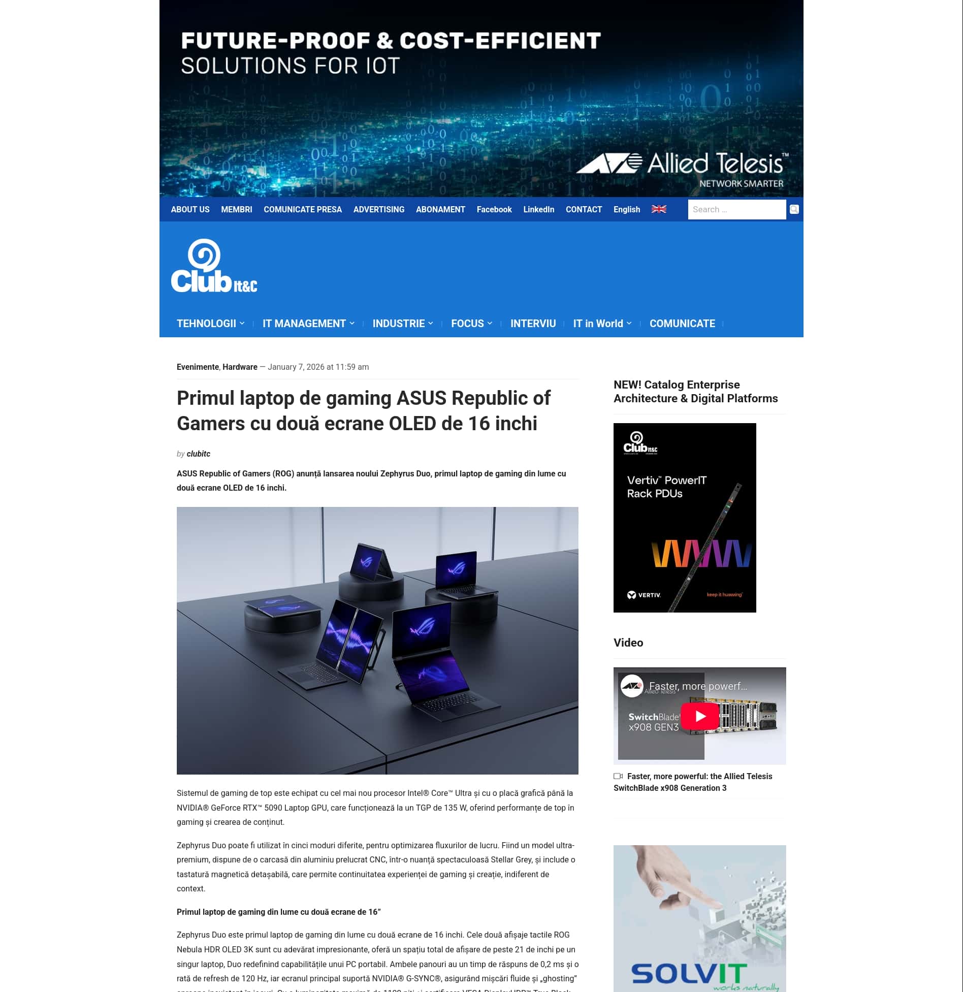 Primul laptop de gaming ASUS Republic of Gamers cu două ecrane OLED de 16 inchi