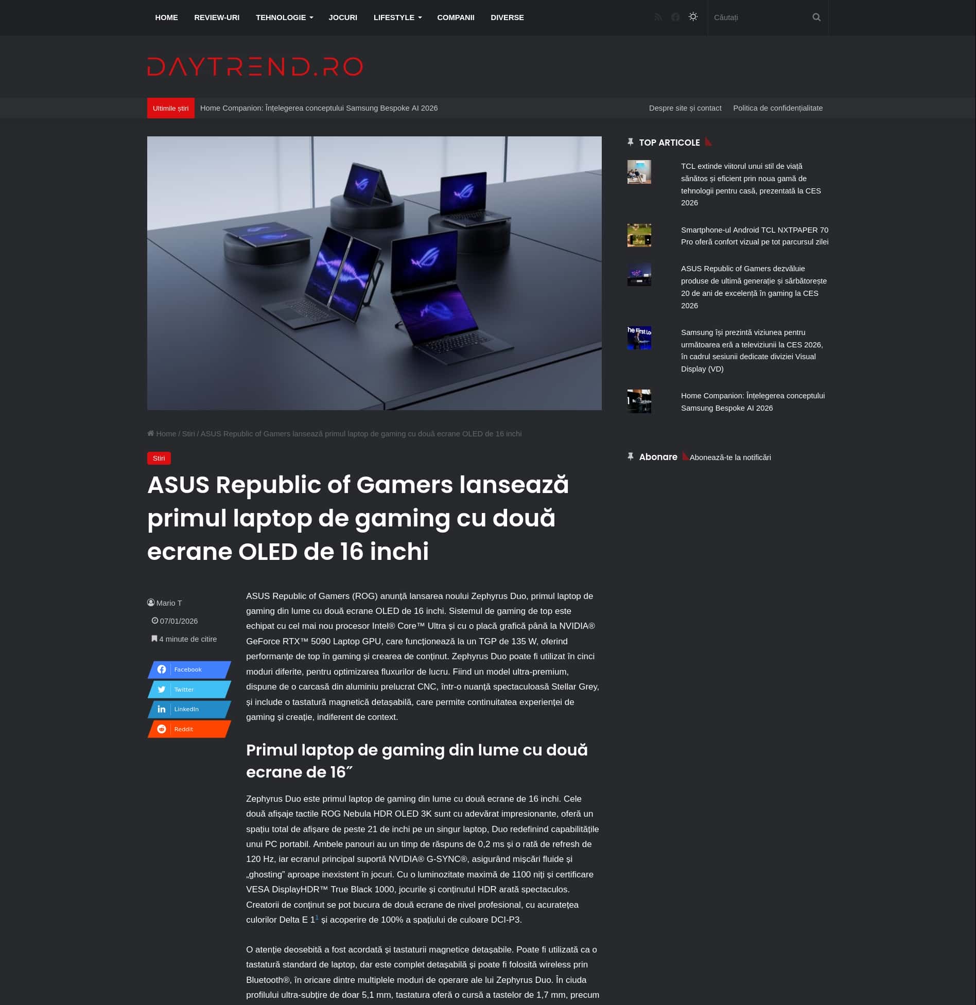 ASUS Republic of Gamers lansează primul laptop de gaming cu două ecrane OLED de 16 inchi