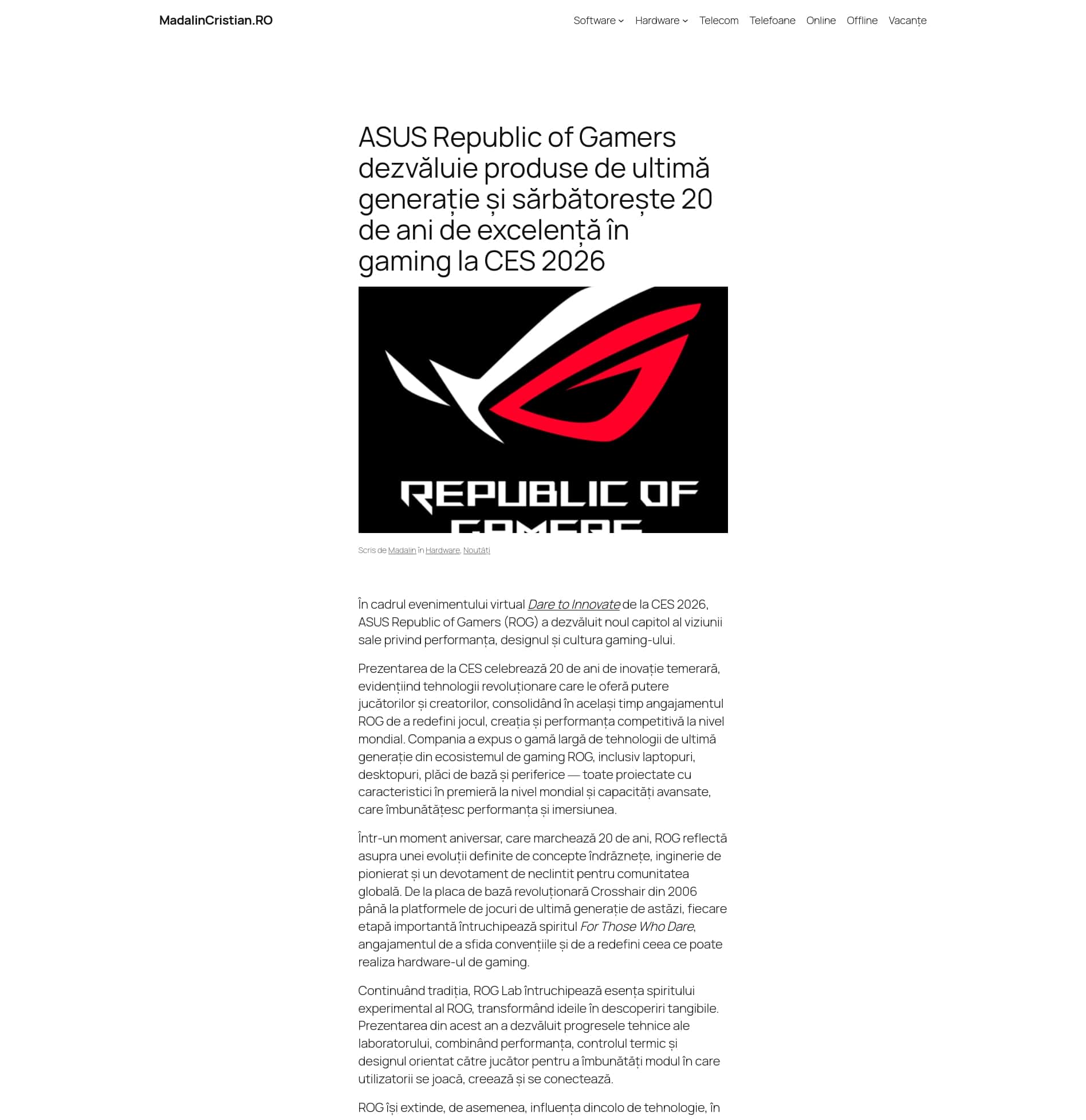 At the Dare to Innovate virtual event at CES 2026, ASUS Republic of Gamers (ROG) unveiled the next chapter in its vision for gaming performance, design, and culture. The CES presentation celebrates 20 years of innovation.