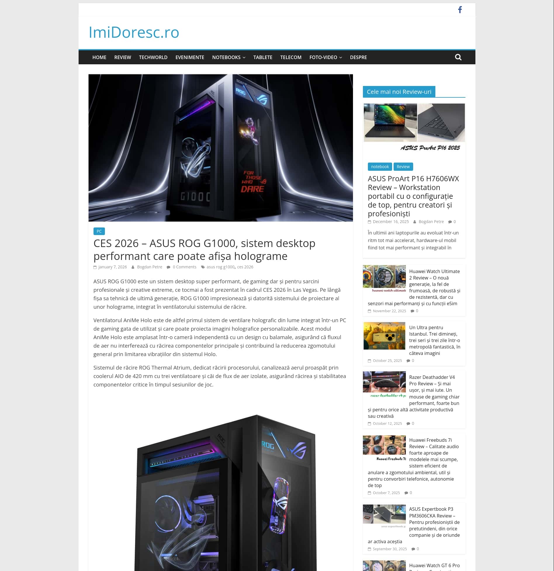 CES 2026 – ASUS ROG G1000, sistem desktop performant care poate afișa holograme