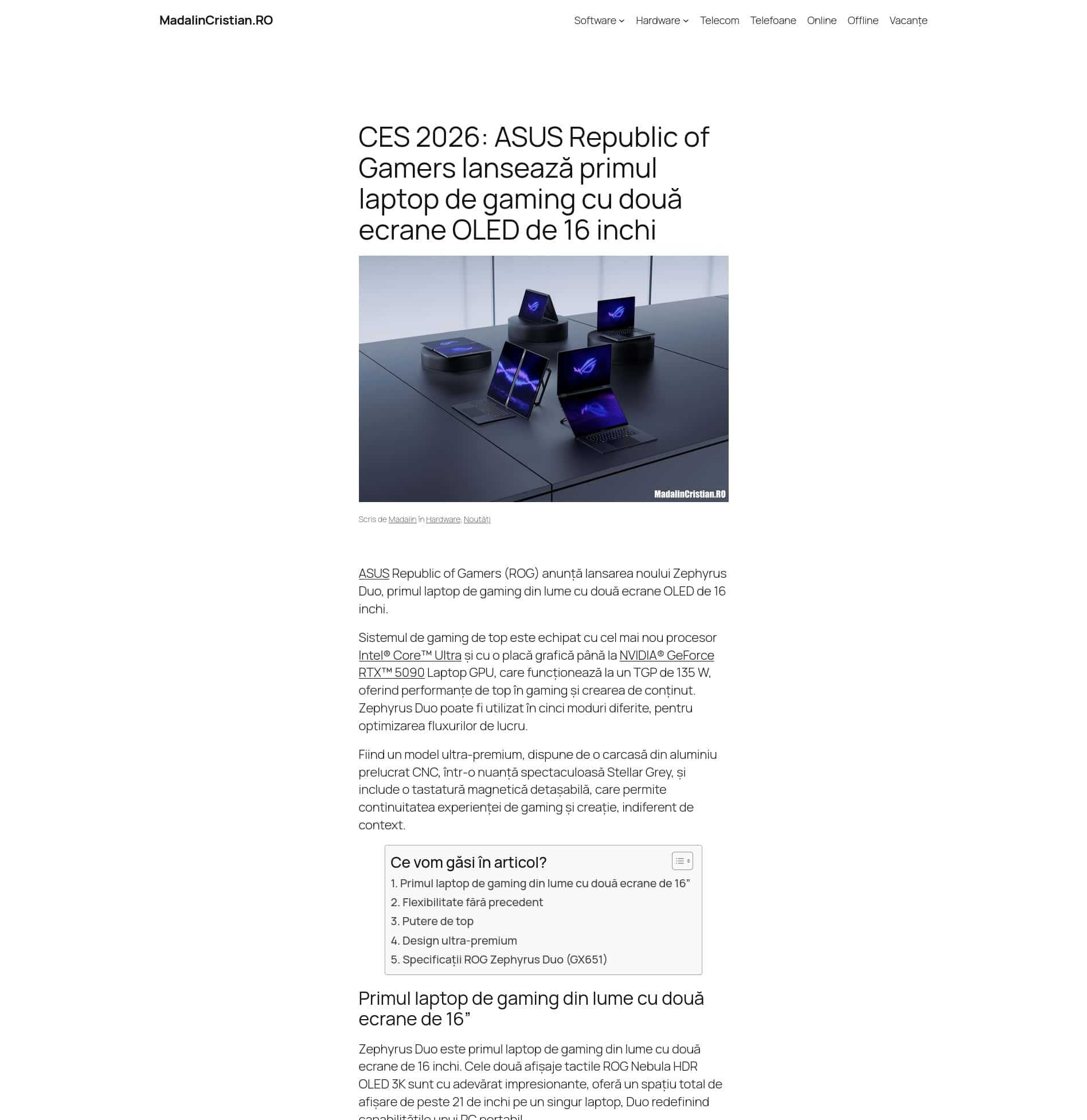 CES 2026: ASUS Republic of Gamers lansează primul laptop de gaming cu două ecrane OLED de 16 inchi