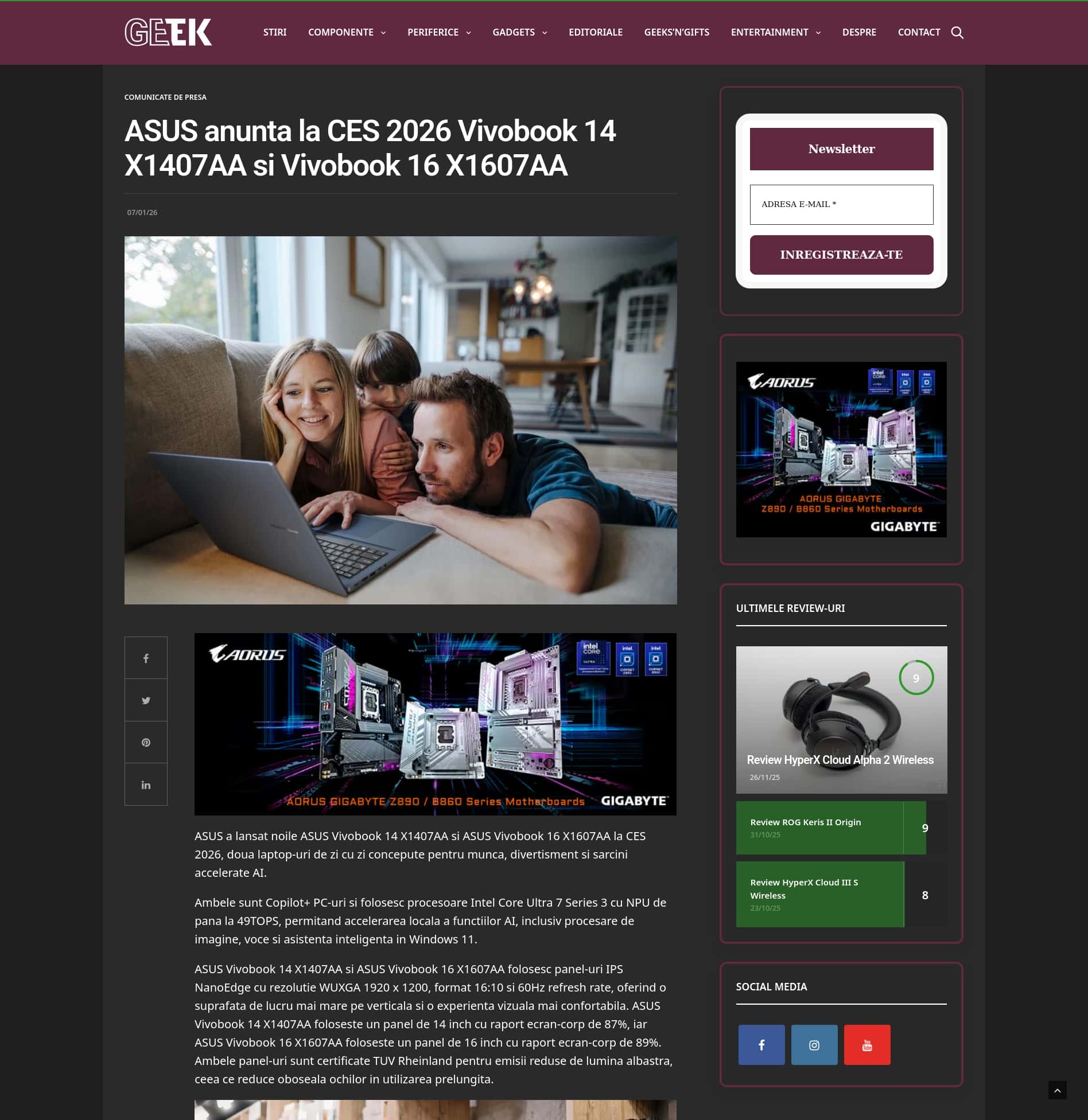 ASUS anunta la CES 2026 Vivobook 14 X1407AA si Vivobook 16 X1607AA