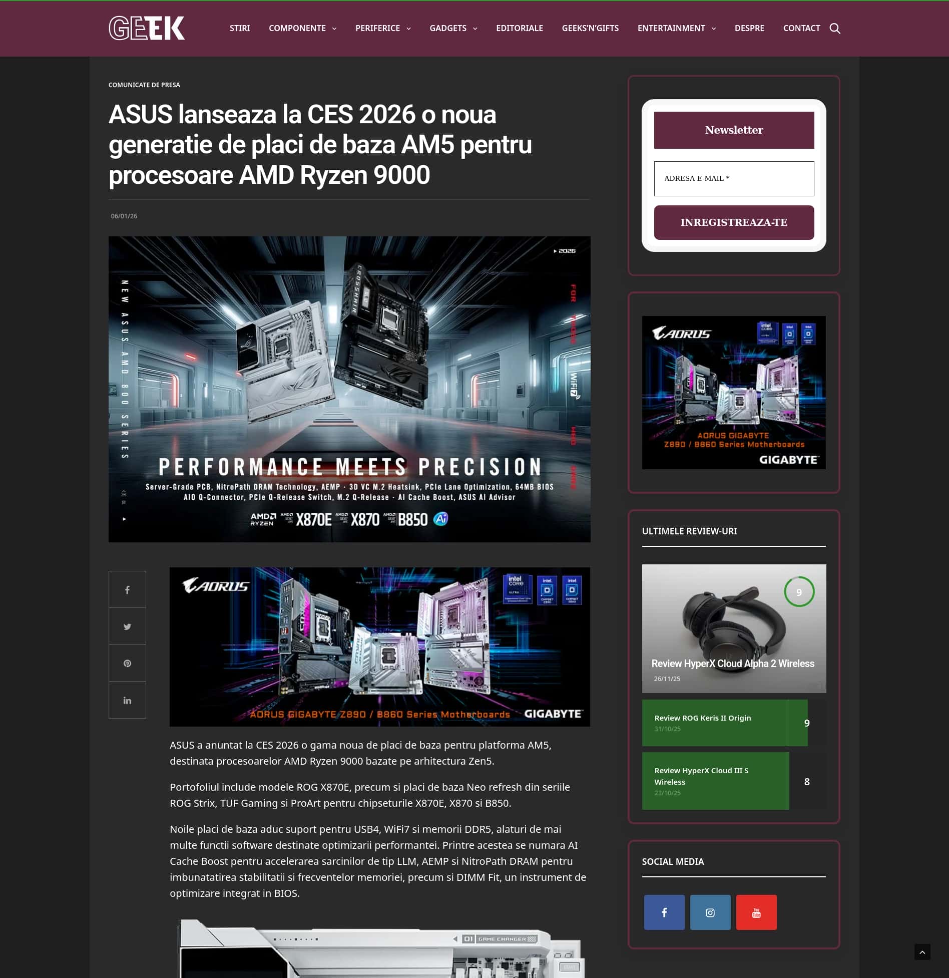 ASUS lanseaza la CES 2026 o noua generatie de placi de baza AM5 pentru procesoare AMD Ryzen 9000