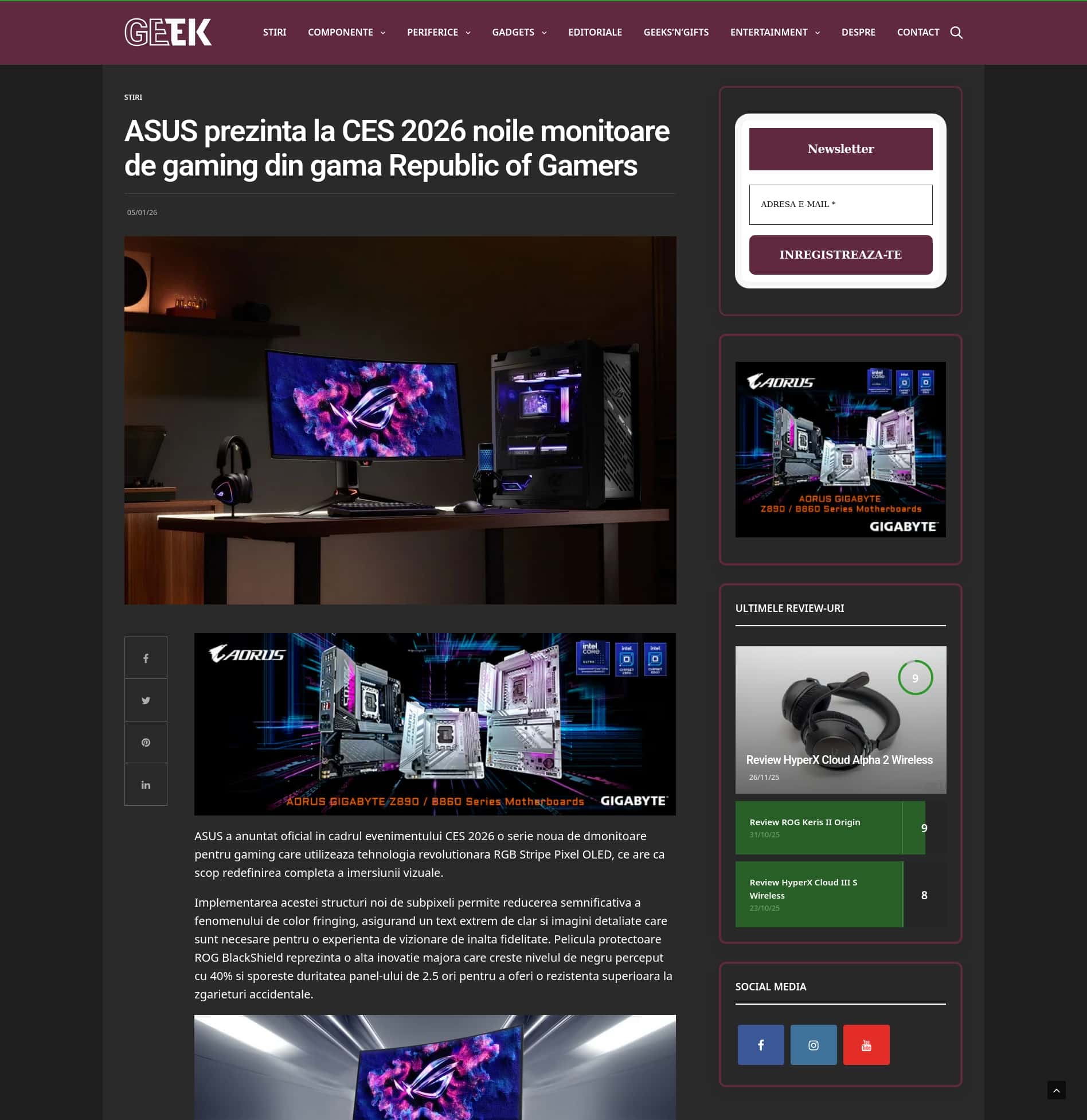 ASUS prezinta la CES 2026 noile monitoare de gaming din gama Republic of Gamers