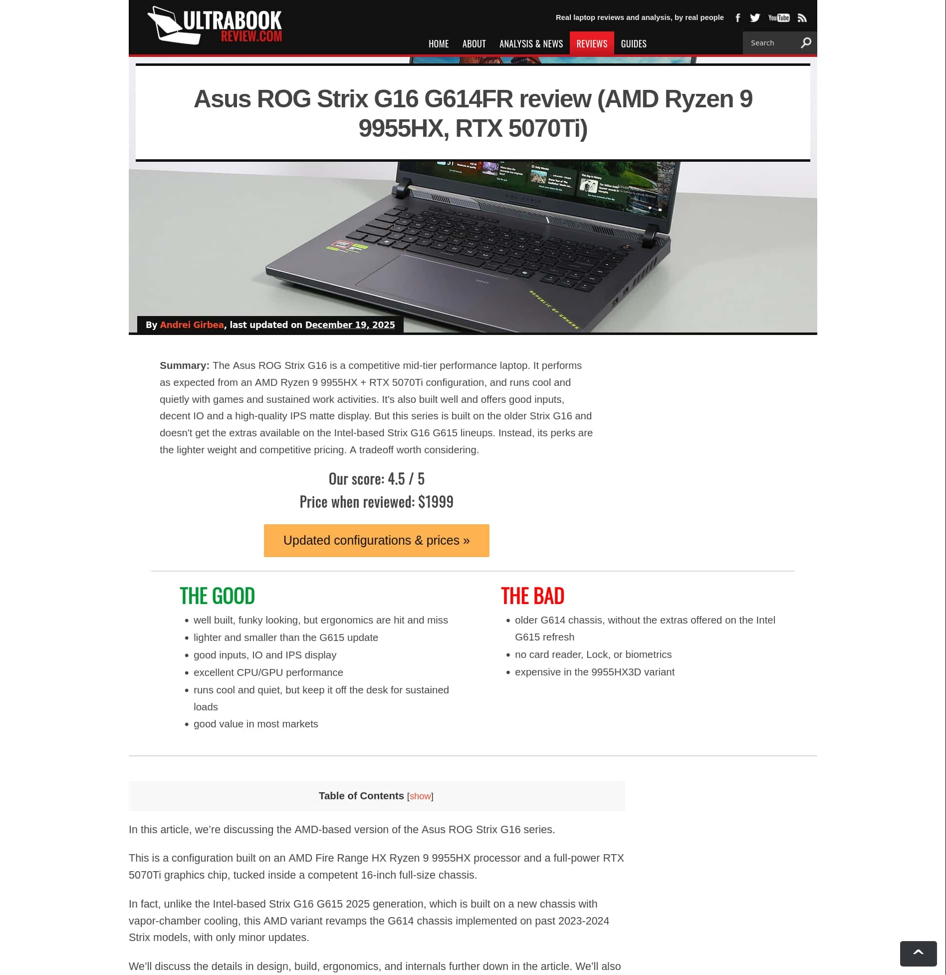 Asus ROG Strix G16 G614FR review (AMD Ryzen 9 9955HX, RTX 5070Ti)