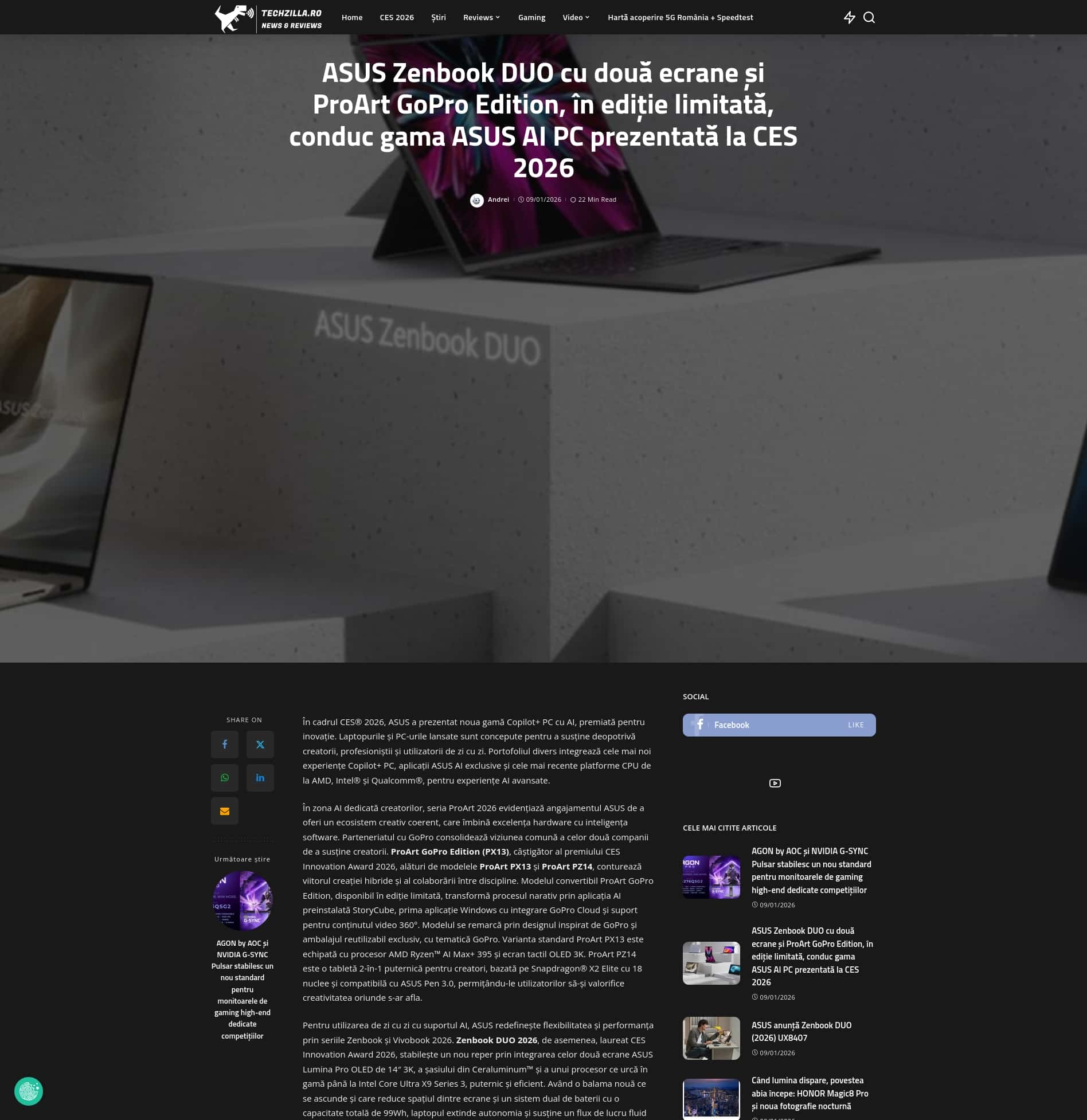 ASUS Zenbook DUO cu două ecrane și ProArt GoPro Edition, în ediție limitată, conduc gama ASUS AI PC prezentată la CES 2026