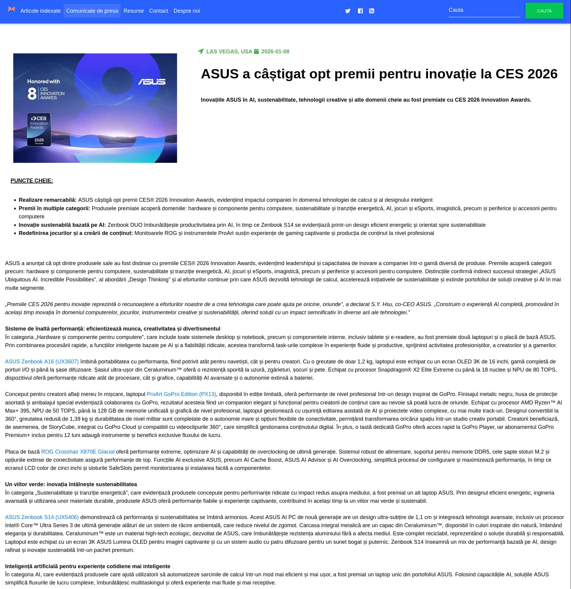 ASUS a caștigat opt premii pentru inovație la CES 2026