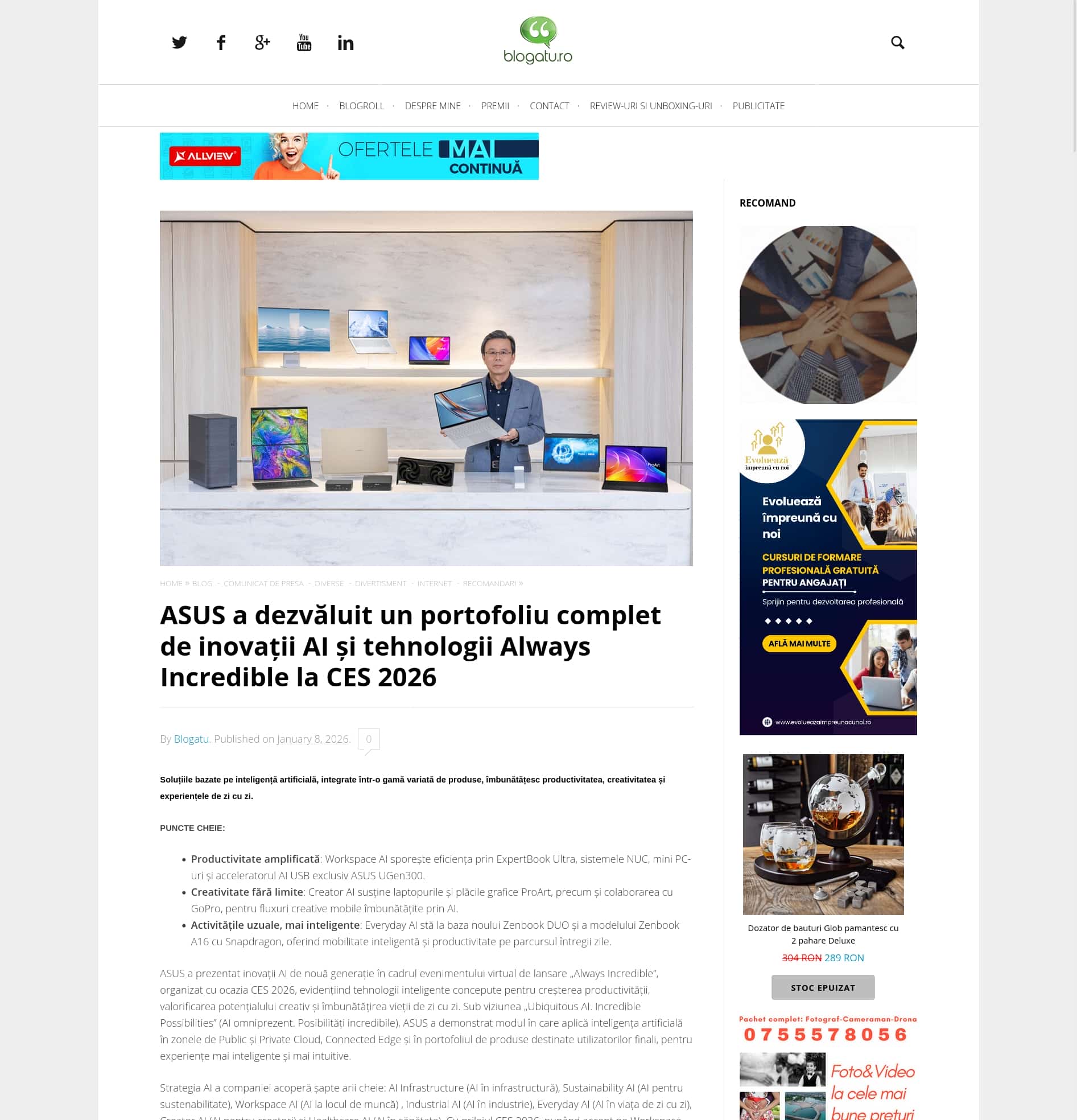 ASUS a dezvăluit un portofoliu complet de inovații AI și tehnologii Always Incredible la CES 2026