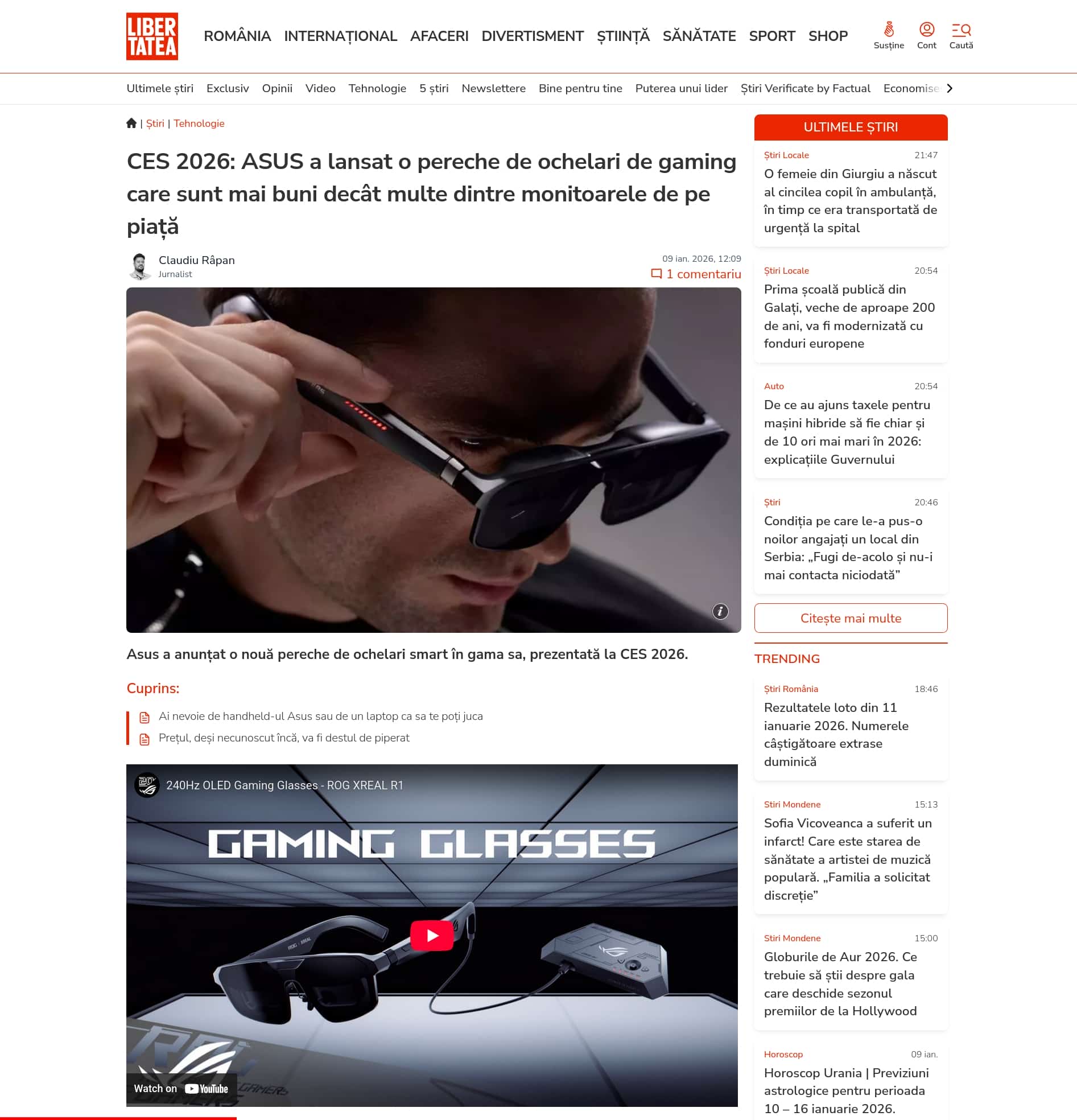 CES 2026: ASUS a lansat o pereche de ochelari de gaming care sunt mai buni decât multe dintre monitoarele de pe piață