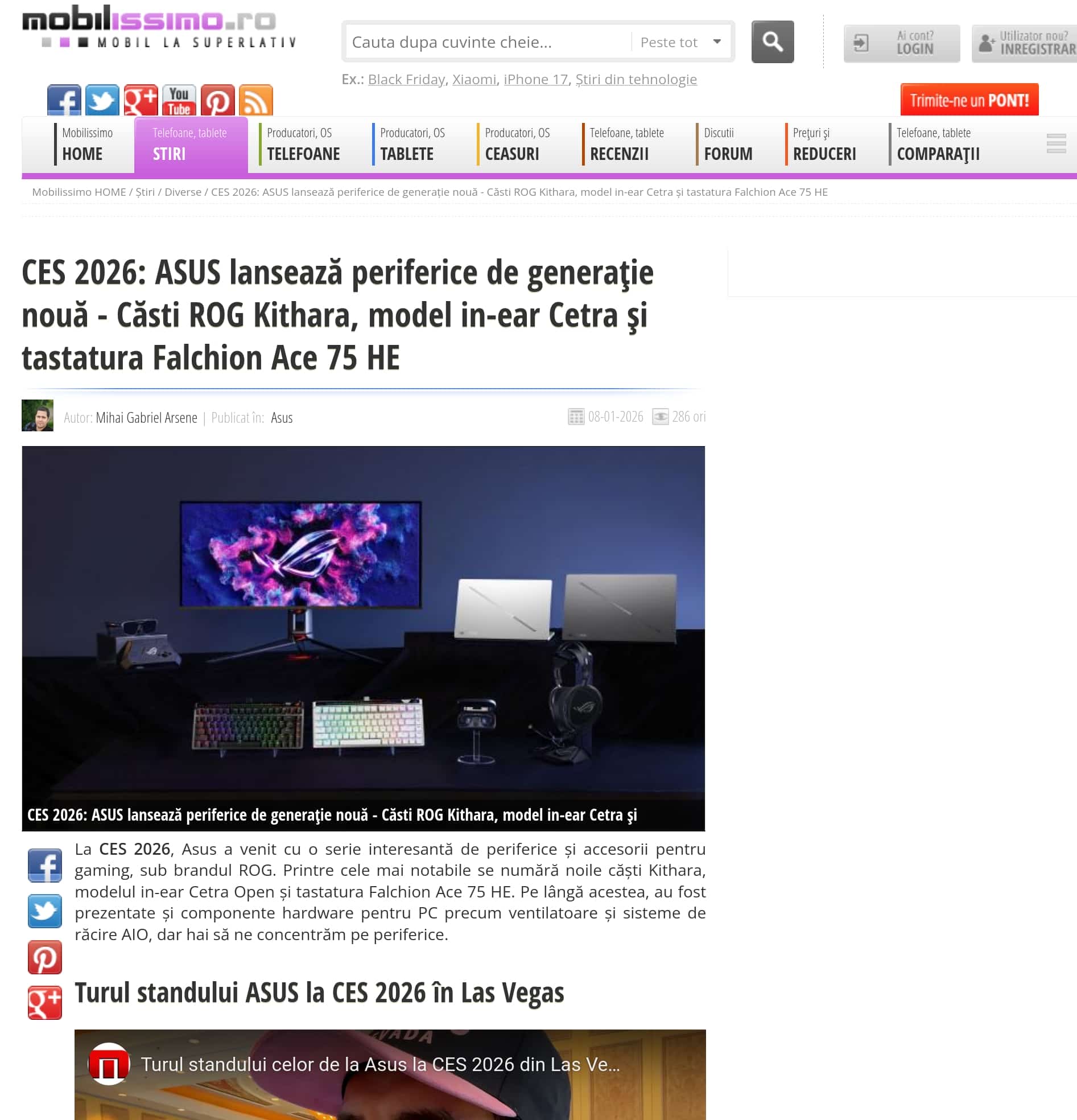 CES 2026: ASUS lansează periferice de generație nouă - Căsti ROG Kithara, model in-ear Cetra și tastatura Falchion Ace 75 HE