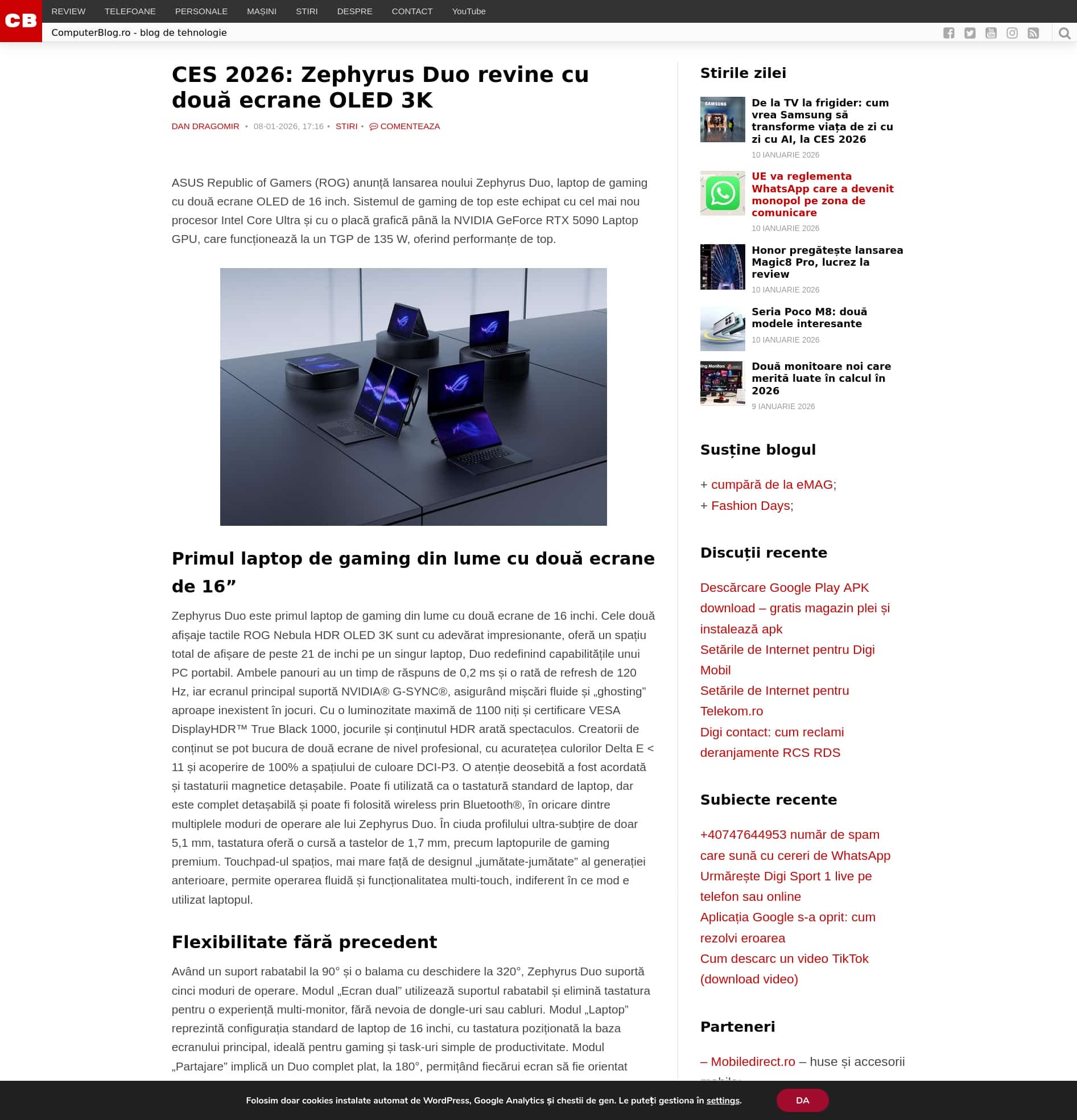 CES 2026: Zephyrus Duo revine cu două ecrane OLED 3K
