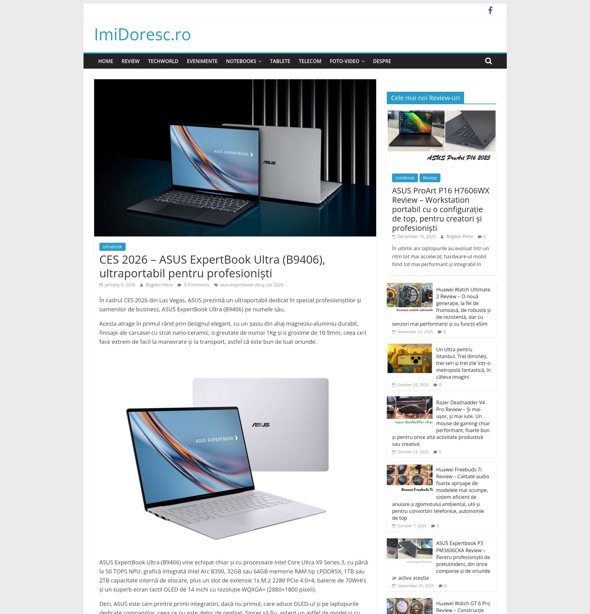 CES 2026 – ASUS ExpertBook Ultra (B9406), ultraportabil pentru profesioniști