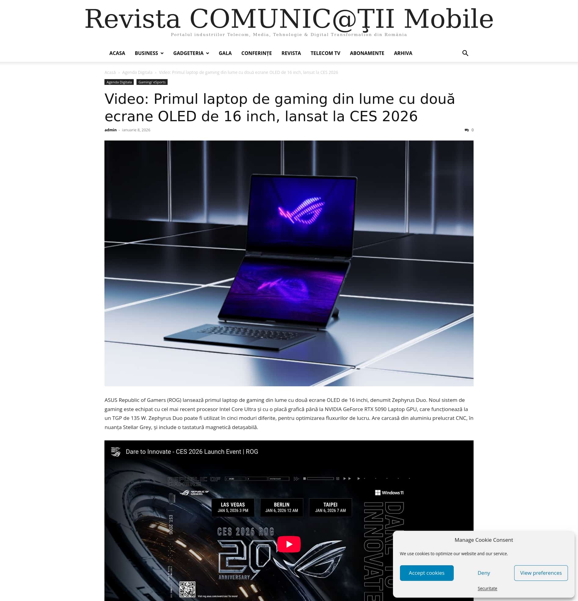 Primul laptop de gaming din lume cu două ecrane OLED de 16 inch, lansat la CES 2026