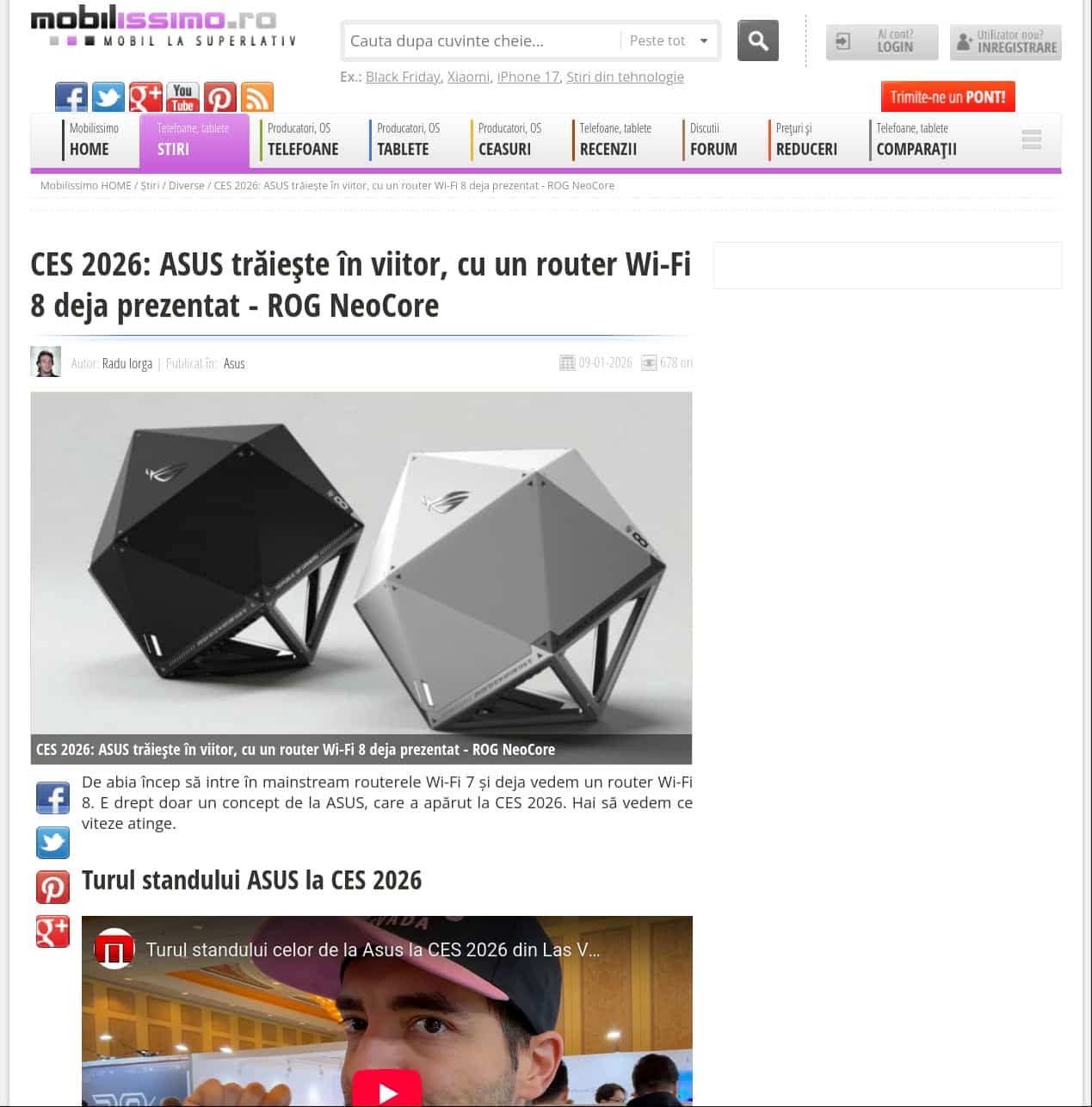 CES 2026: ASUS trăieşte în viitor, cu un router Wi-Fi 8 deja prezentat - ROG NeoCore
