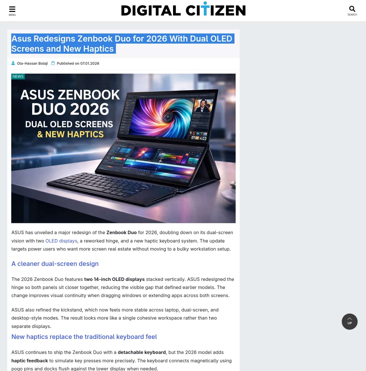 Asus Redesigns Zenbook Duo for 2026 With Dual OLED Screens and New Haptics