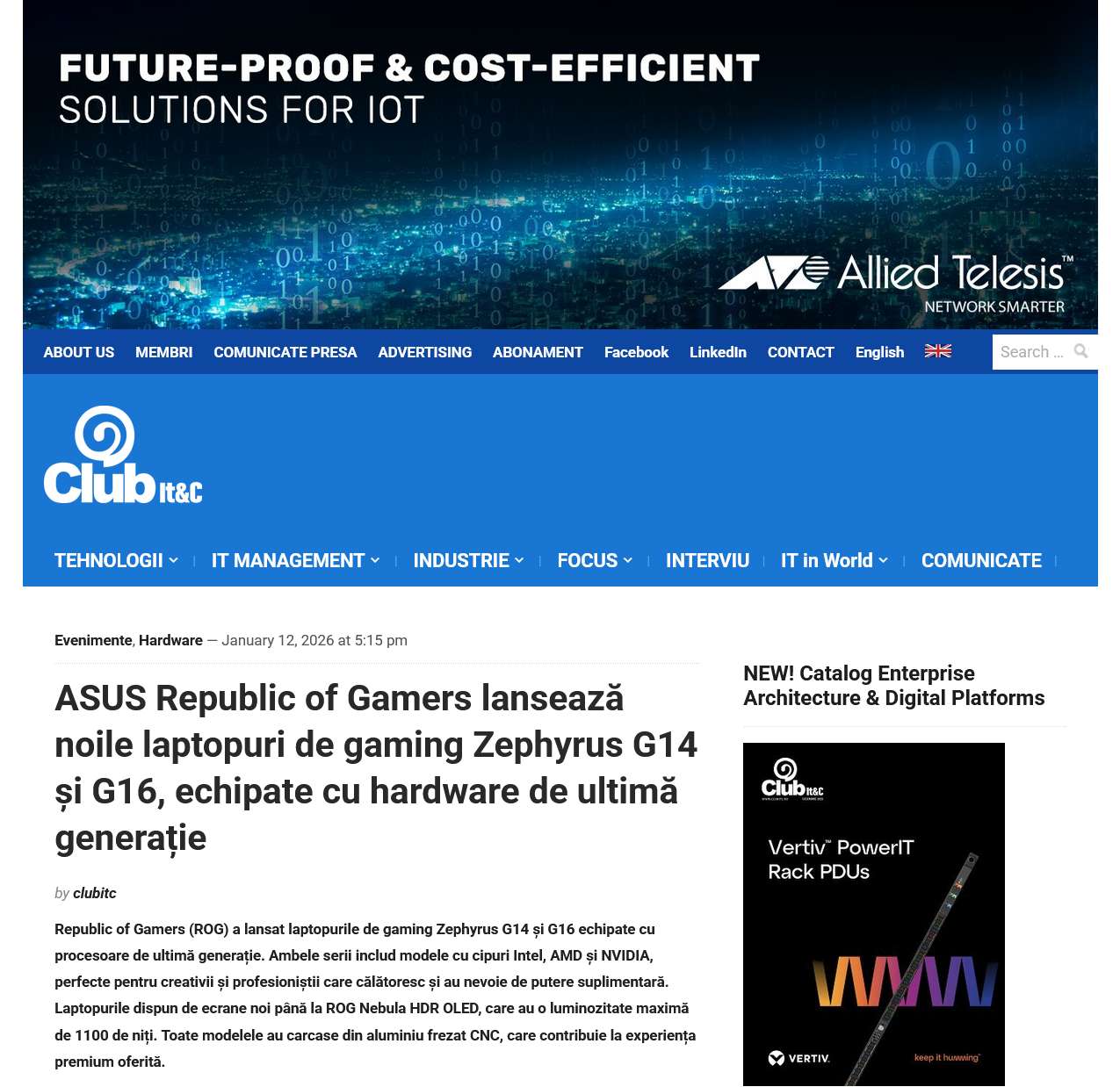ASUS Republic of Gamers lansează noile laptopuri de gaming Zephyrus G14 și G16, echipate cu hardware de ultimă generație