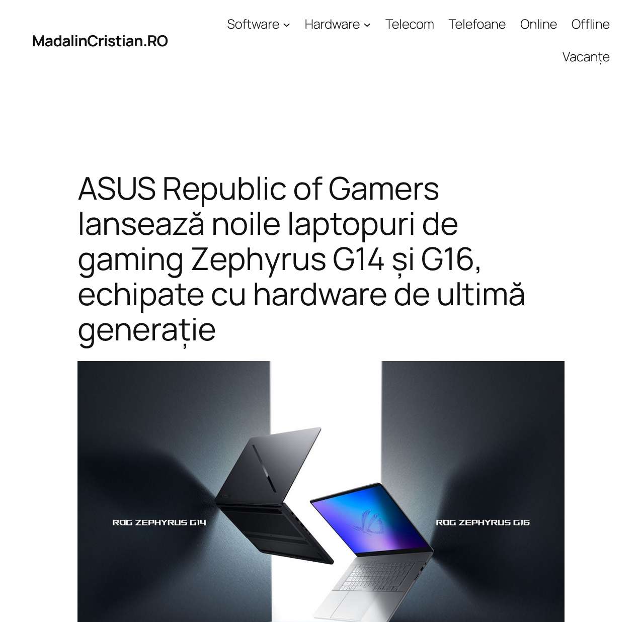 ASUS Republic of Gamers lansează noile laptopuri de gaming Zephyrus G14 și G16, echipate cu hardware de ultimă generație