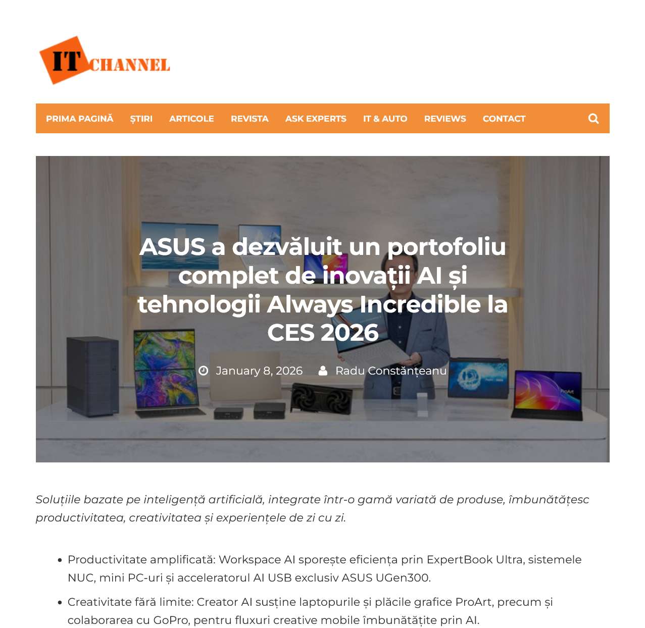 ASUS a dezvăluit un portofoliu complet de inovații AI și tehnologii Always Incredible la CES 2026