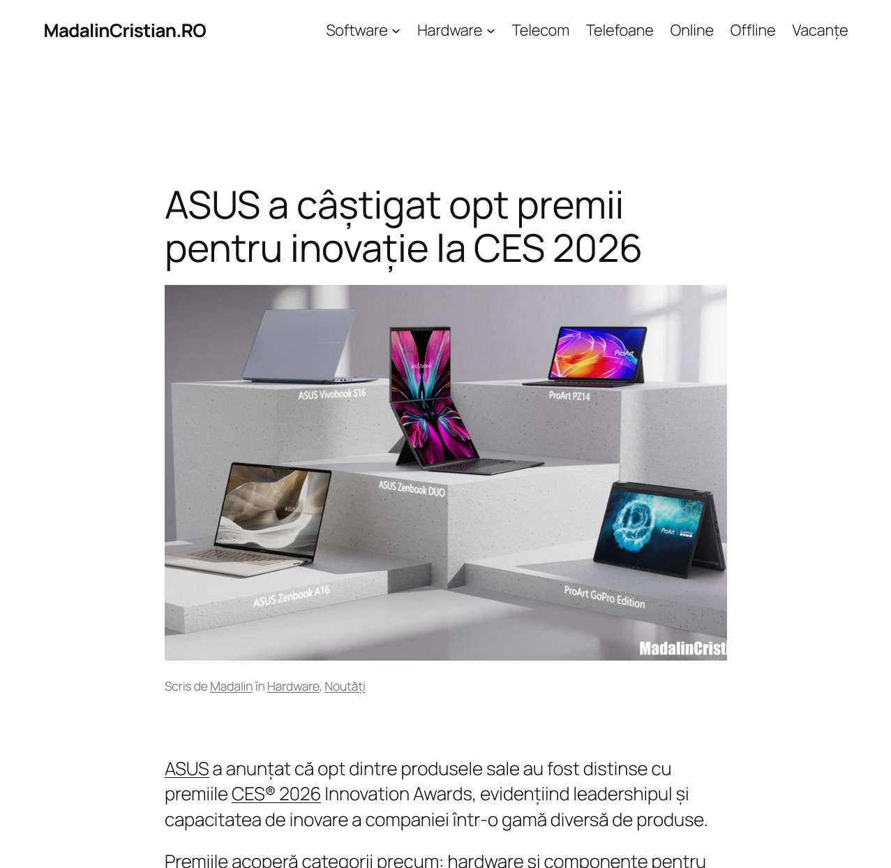 ASUS a câștigat opt premii pentru inovație la CES 2026