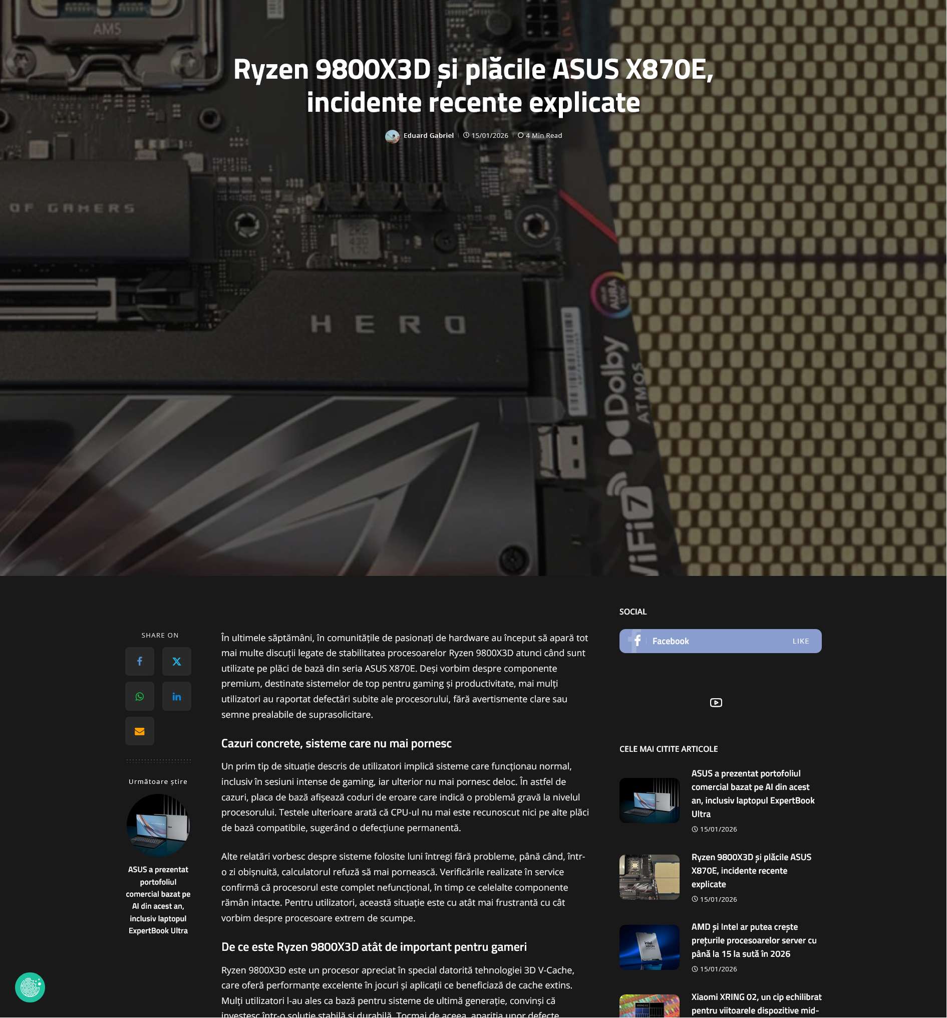 Ryzen 9800X3D și placile ASUS X870E, incidente recente explicate