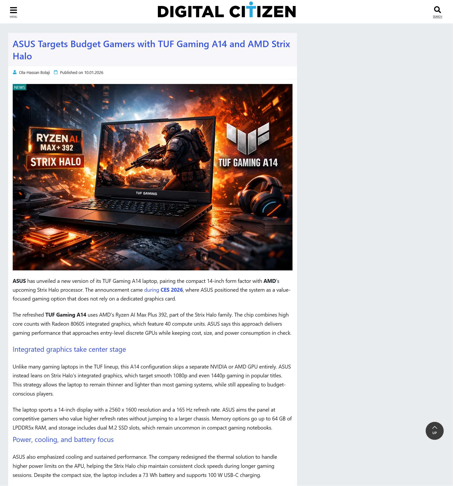 ASUS introduced the TUF Gaming A14 with AMD Strix Halo at CES 2026, using powerful integrated Radeon 8060S graphics to deliver budget-friendly gaming without a discrete GPU, focusing on portability, efficiency, and value.