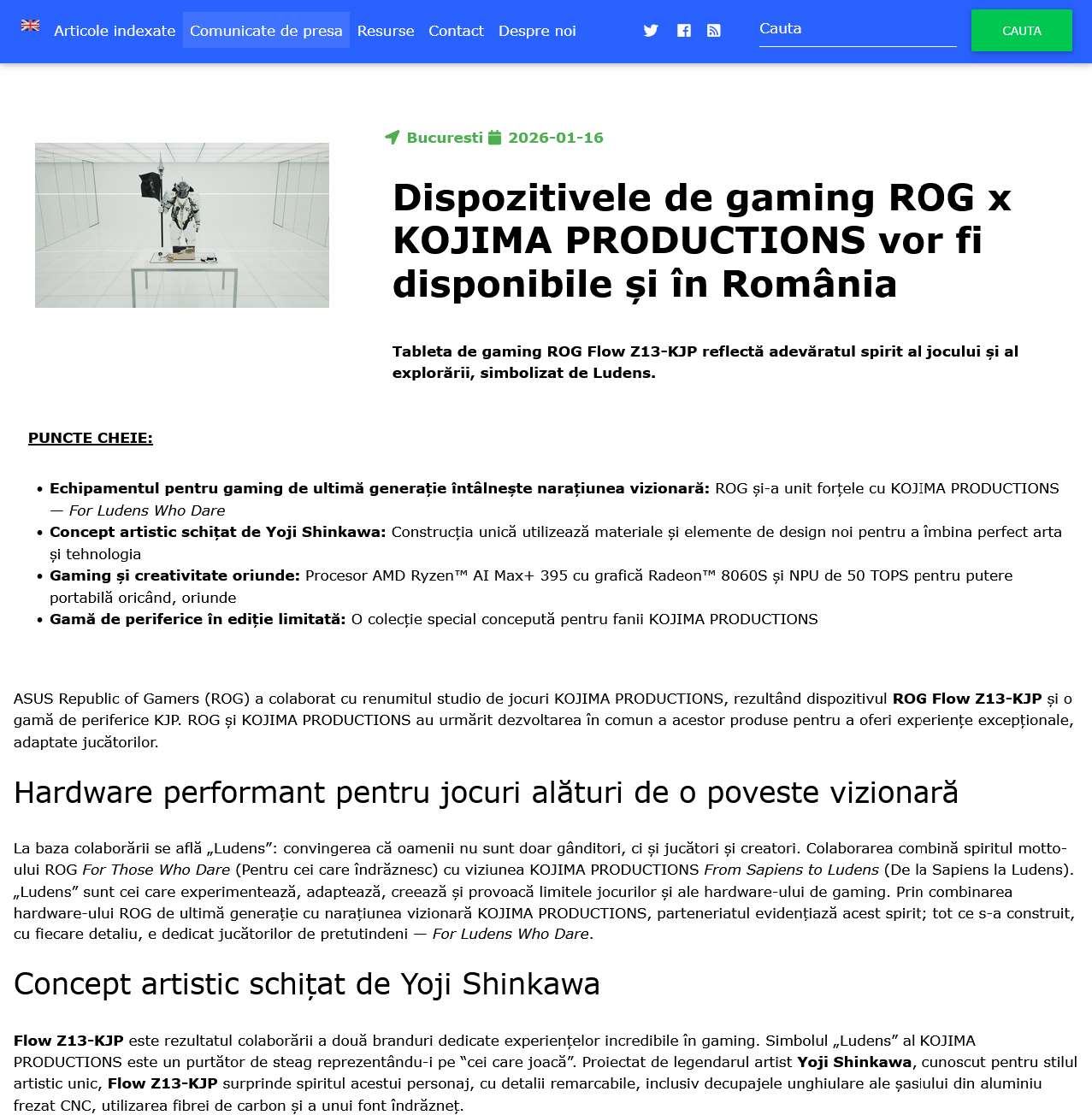 ROG x KOJIMA PRODUCTIONS gaming devices will also be available in Romania