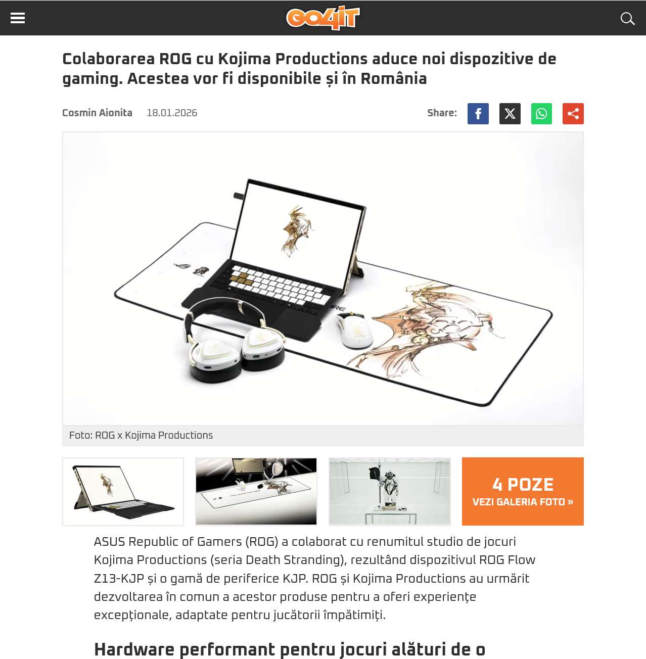 ROG x KOJIMA PRODUCTIONS gaming devices will also be available in Romania