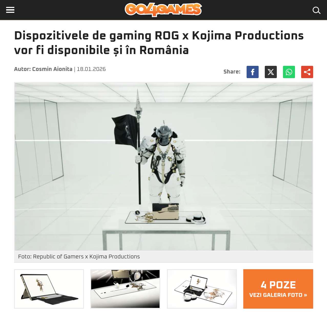 ROG x KOJIMA PRODUCTIONS gaming devices will also be available in Romania