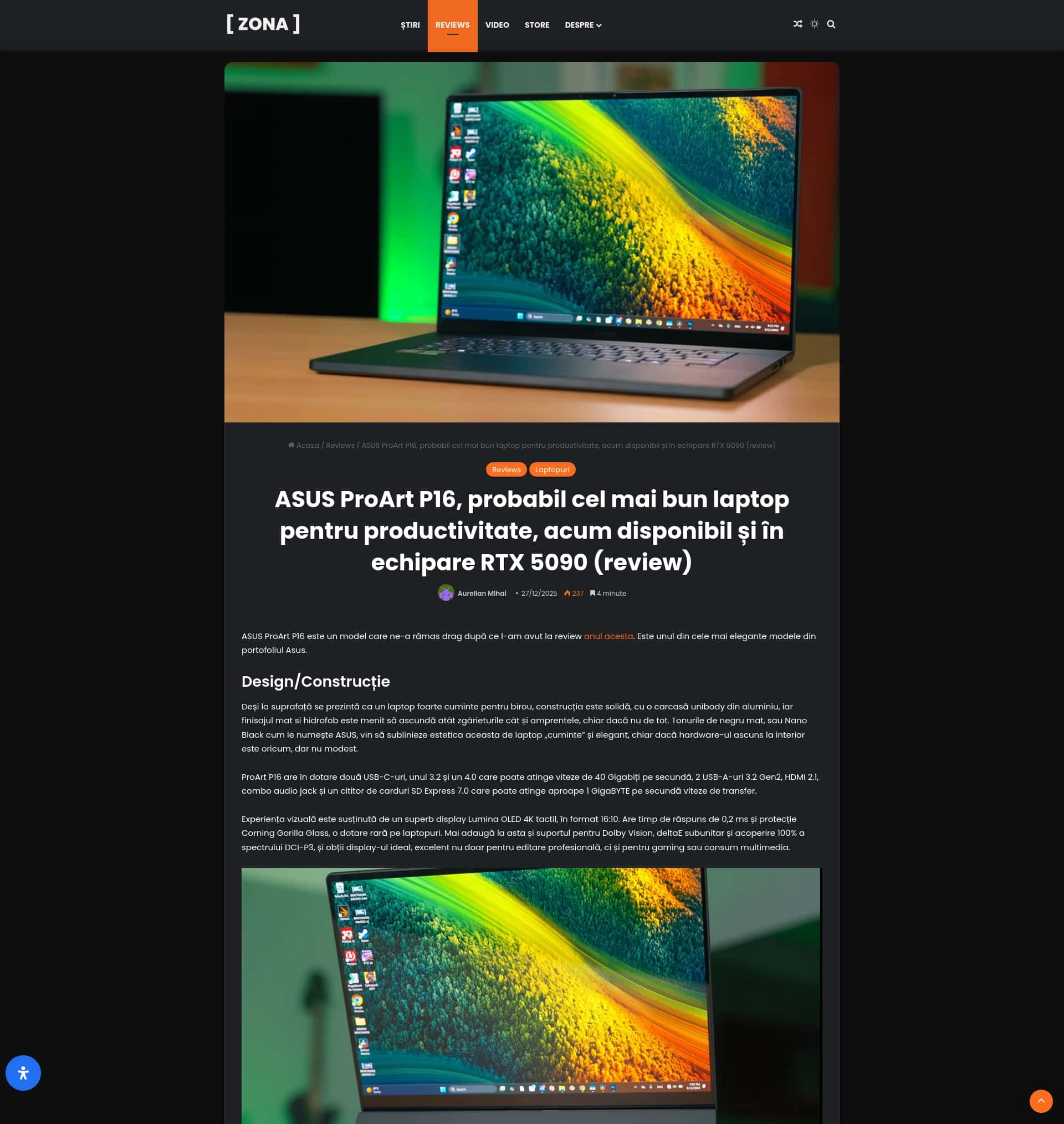 ASUS ProArt P16, probabil cel mai bun laptop pentru productivitate, acum disponibil și in echipare RTX 5090 (review)