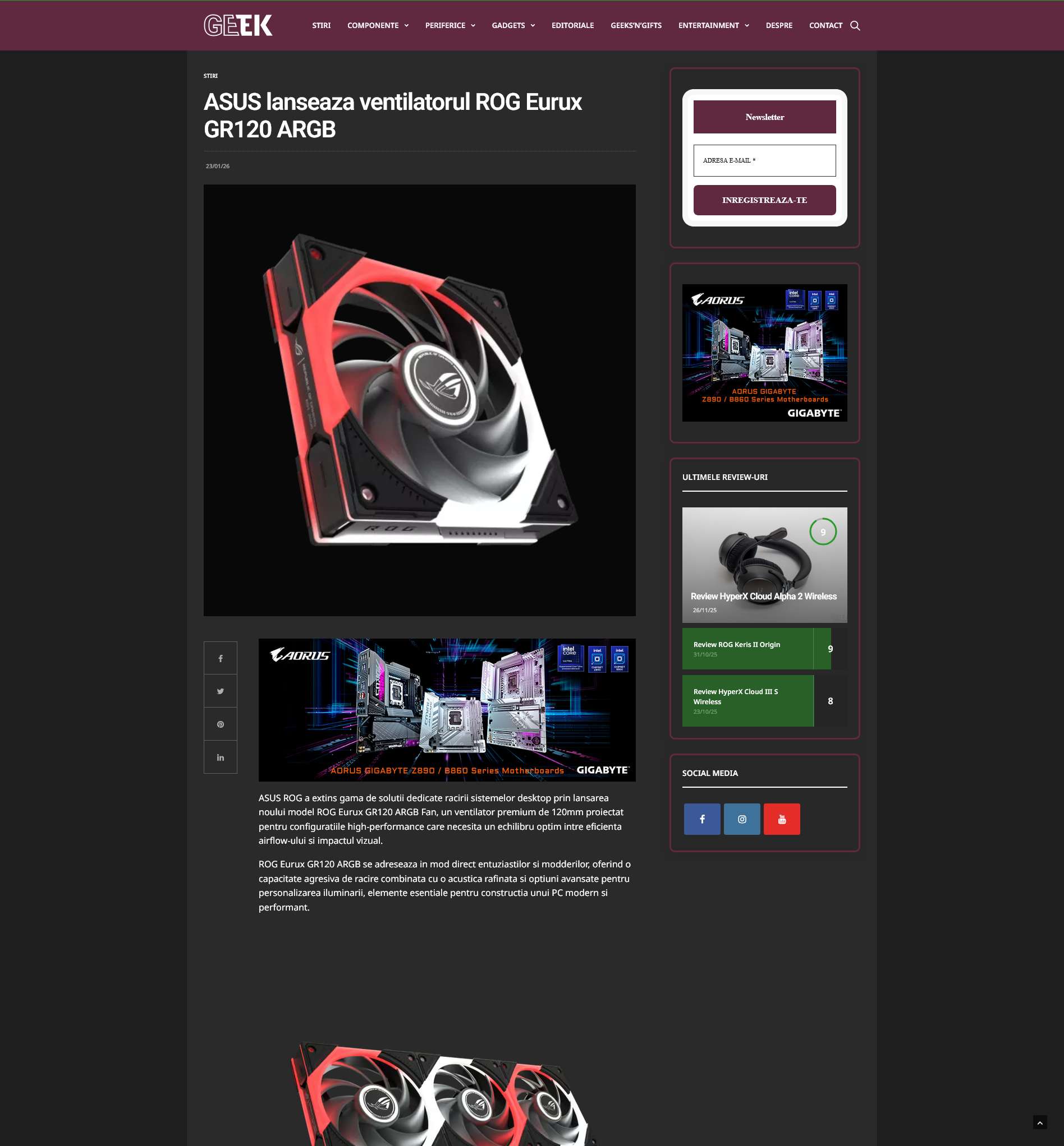 ASUS lanseaza ventilatorul ROG Eurux GR120 ARGB