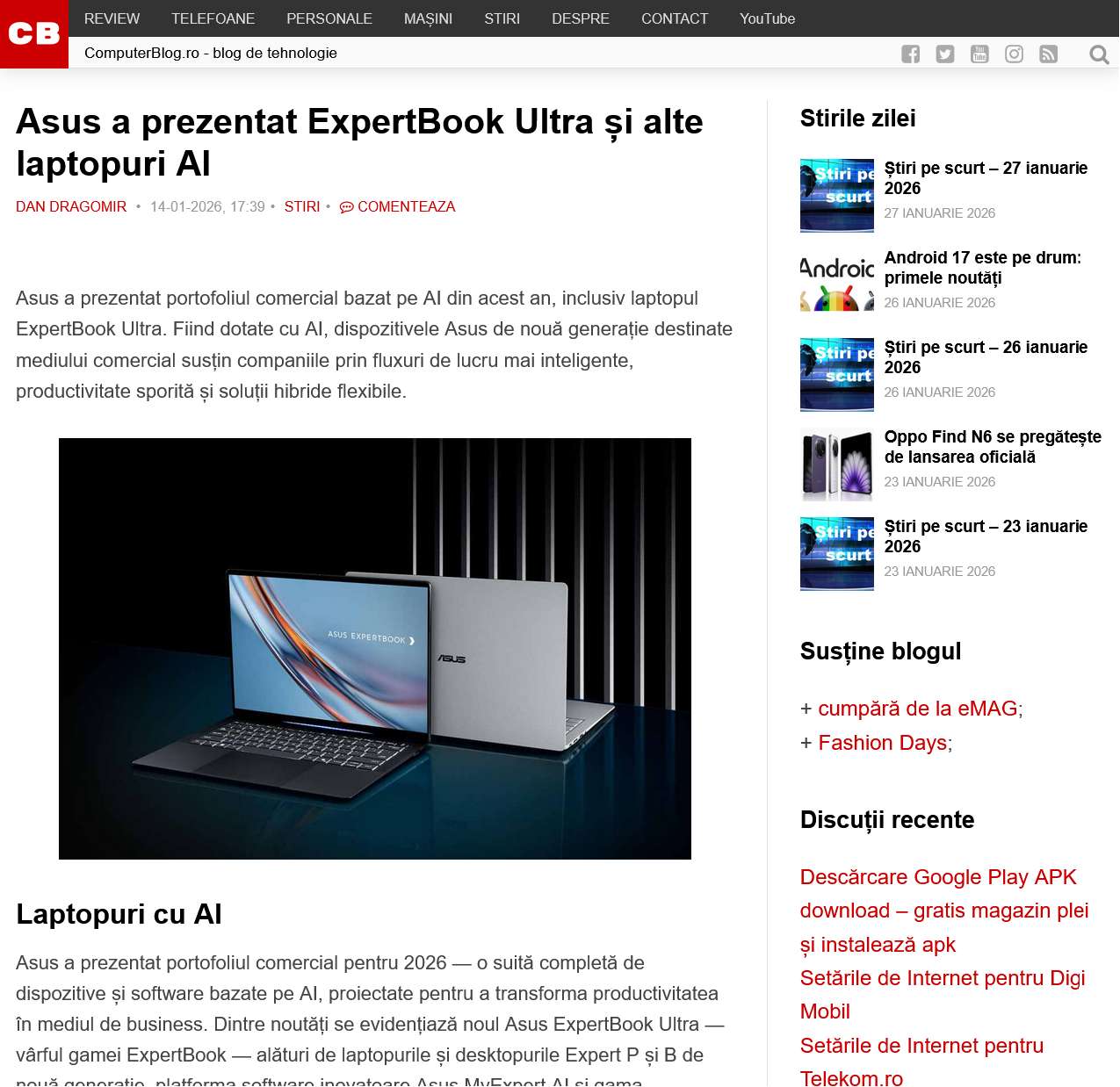 Asus a prezentat ExpertBook Ultra și alte laptopuri AI